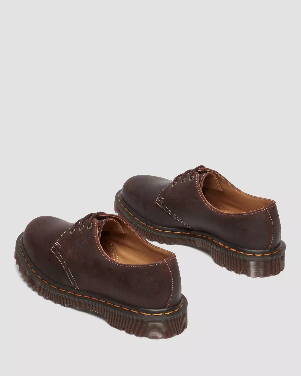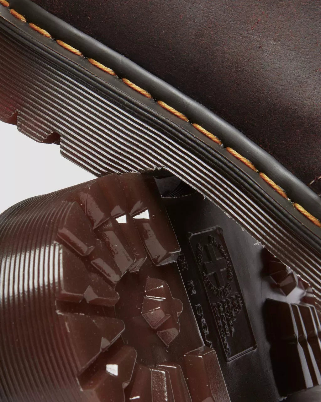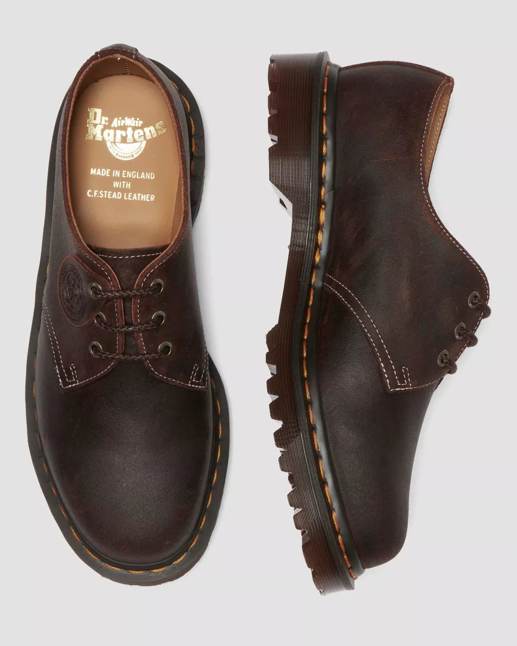 This 1461 is a Made in England style, hand-crafted by our Cobbs Lane factory in Wollaston, Northamptonshire, England. Considered details, like antiqued eyelets, a stamped leather tag, striped hiker laces, and premium C.F. Stead leather, bring a high-fashion feel to the style of our 3-eye silhouette. Our partnership with CF Stead & Co. brings together two British heritage brands for footwear steeped in refined sophistication and history. Founded in 1904, CF Stead is a tannery in Leeds, West Yorkshire specializing in high-quality, imported, naturally-tanned skins — and we've been using their leather since 1970.Made with Wax Commander by C.F. Stead, a heavyweight leather with a deeply waxed finish and a vintage feelBuilt on the iconic and comfortable Dr. Martens AirWair™ air-cushioned sole, with a commando treadThe sole is secured using one of the most durable construction methods available: the Goodyear weltRetains classic Docs DNA, with yellow welt stitching, grooved sides and a scripted heel-loop