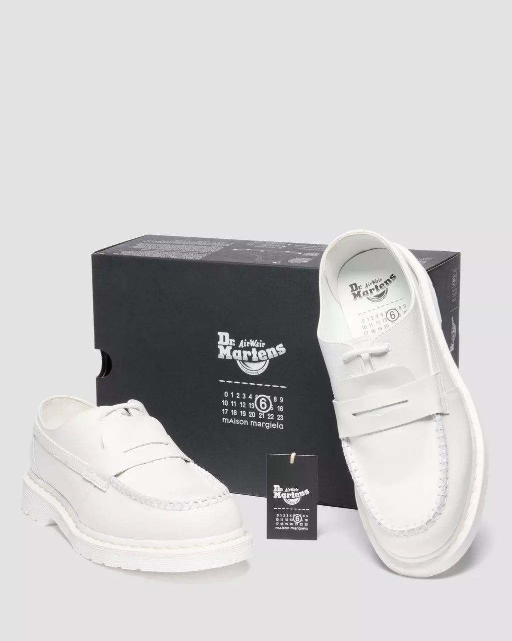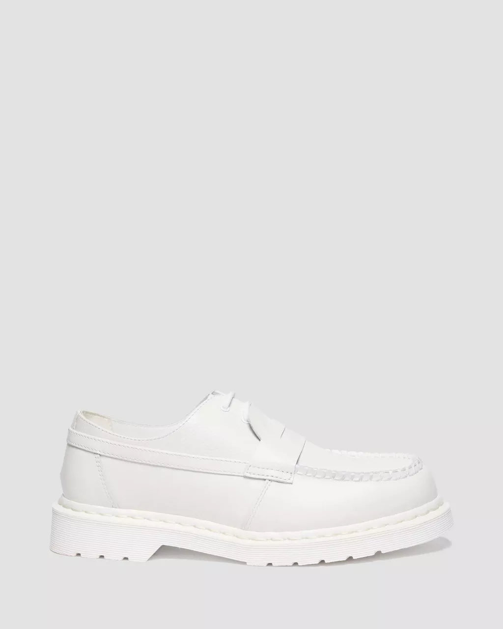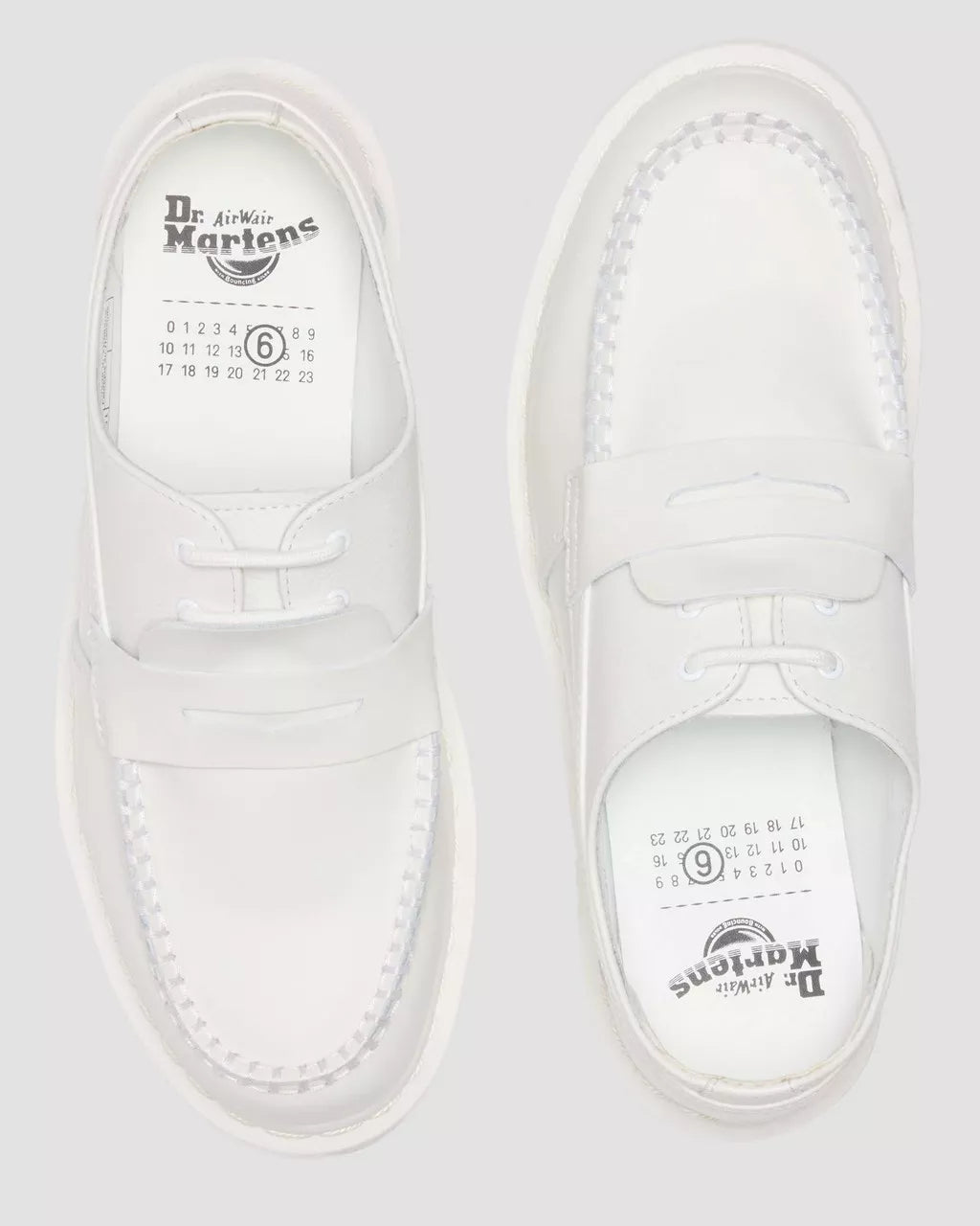 Tradition, reimagined. This 3-eye 1461 shoe collides with the outer of our classic Penton loafer in a minimalist, white-on-white design inspired by MM6’s signature palette. Crafted from a mix of supple Virginia and Smooth leather, the hybrid silhouette is detailed with tonal laces and eyelets. Our iconic scripted heel loop and welt stitching are transformed in white. Set on a matching white DMS sole and built to last with Goodyear welt construction.