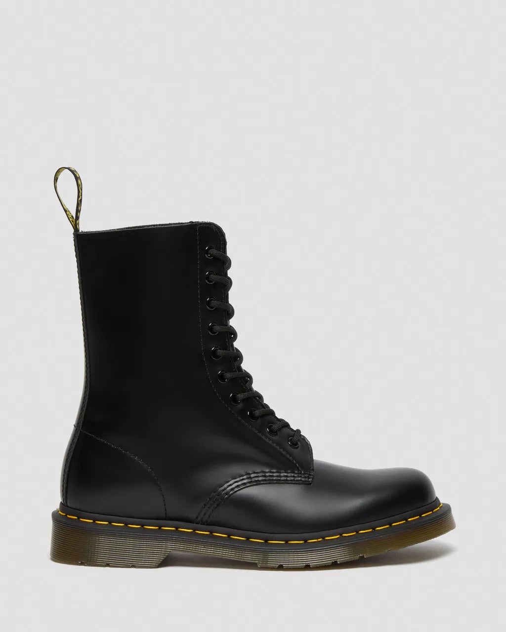 The 1490 10-eye boot is a classic Dr. Martens punk silhouette — laced even higher for an amped-up attitude. 10-eye bootMade with classic Doc's DNA, including grooved edges, yellow stitching and heel-loopBuilt on the iconic Dr. Martens air-cushioned sole, which is oil and fat resistant, with good abrasion and slip resistance