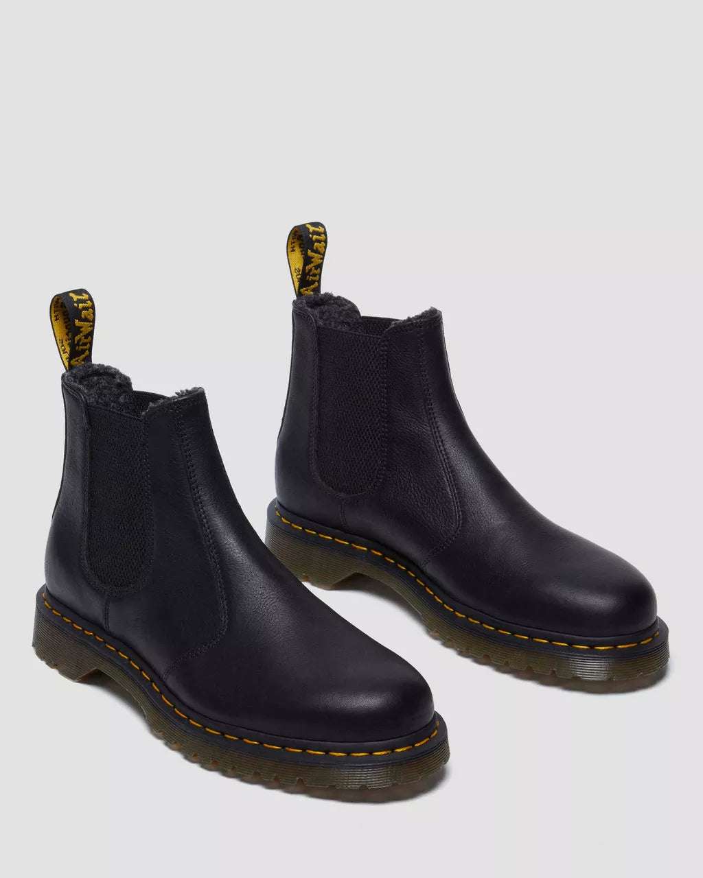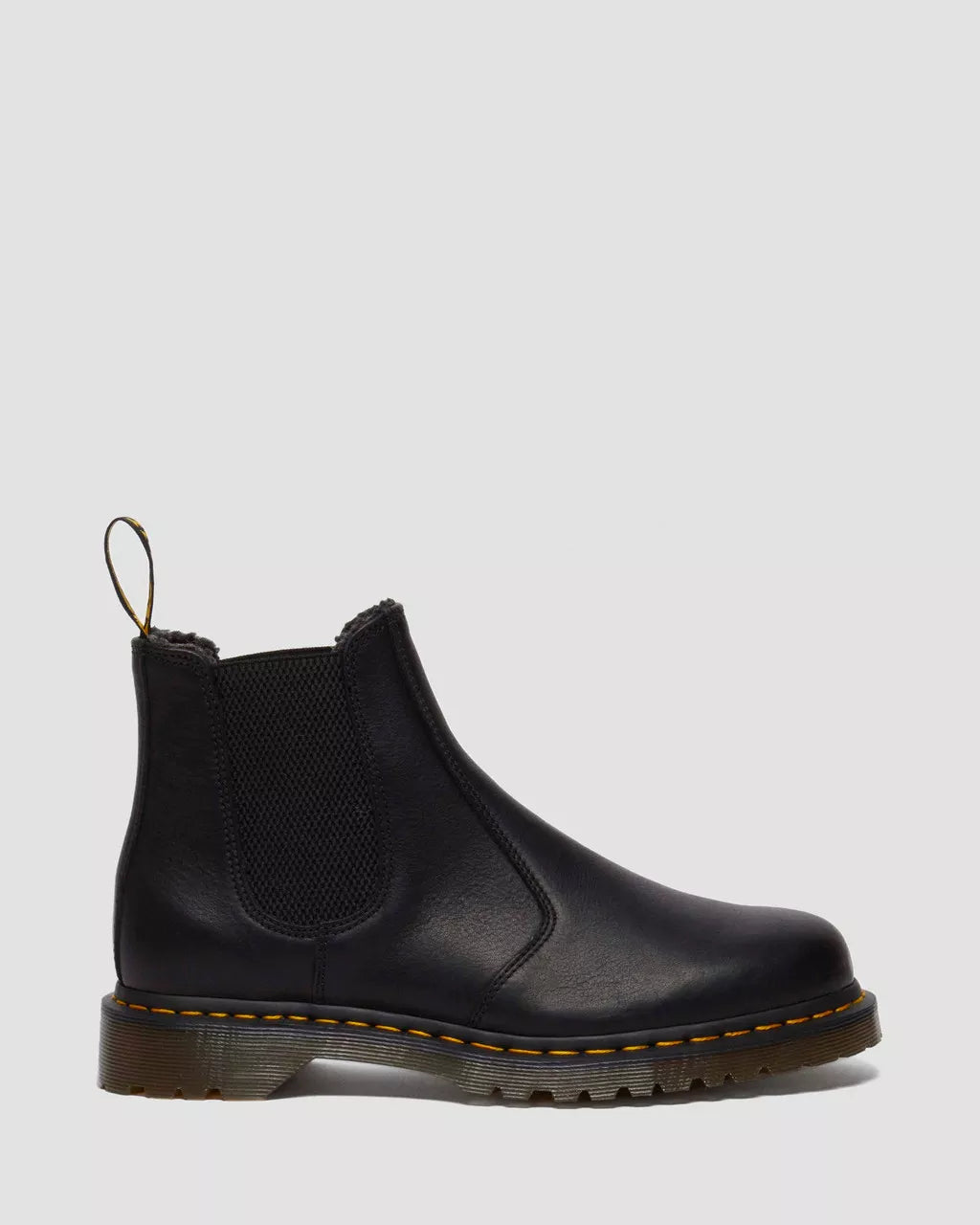 Built to rewear. Winter after winter. Created from Grizzly leather, this 2976 Chelsea Boot is made to age, with a natural texture that develops over time. Hardwearing and rugged, we’ve fused it with WarmWair faux fur to turn up the comfort. Each pair is welted on a BEN outsole with a deeper tread, and finished with signature yellow welt stitching and an AirWair heel loop. Recognisably rebellious.The 2976 boot is our rugged take on the classic Chelsea boot. Manufactured since the 70s. Grizzly is a heavyweight leather with a subtle grained finish that ages and develops with time. Care with Dr. Martens Wonder Balsam.Developed in the 80s. The BEN sole has deeper cleats and a rugged undersole tread pattern.Warm, hardwearing and winter-proof: WarmWair is soft, insulated lining crafted from carefully selected materials.Our Goodyear-welted lines are heat-sealed and reinforced with our signature welt stitch.