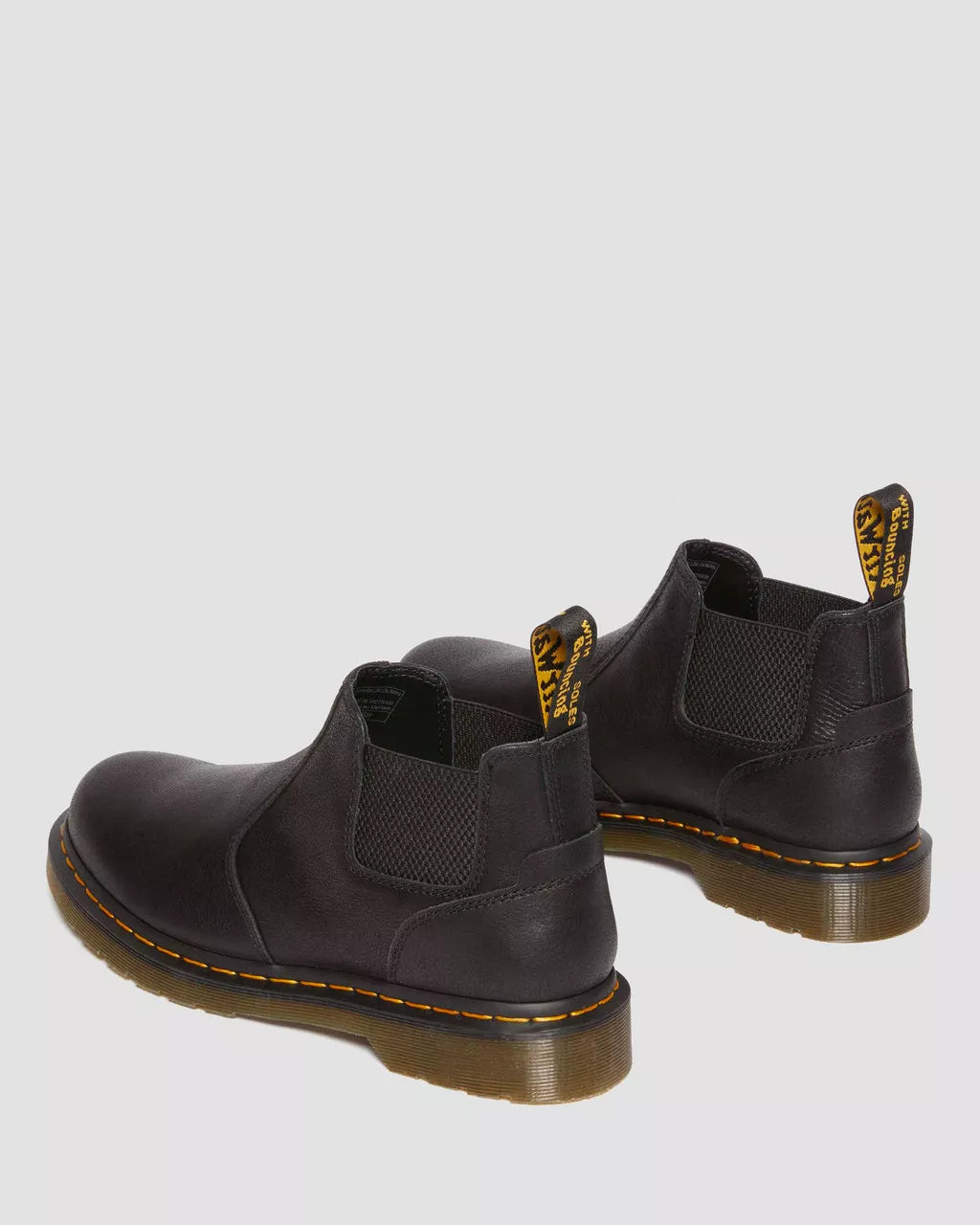 A classic silhouette at a lower height. This reworked version of our 2976 Chelsea boot sits lower on the ankle for those who want the slip-on experience with a little less boot. The 2976 Lo boot is made from soft, tumbled AR Rogue leather and stands on our renowned bouncing sole. Signature Doc’s touches remain across the boot, with a grooved sole edge, yellow welt stitching, and our scripted heel loop.