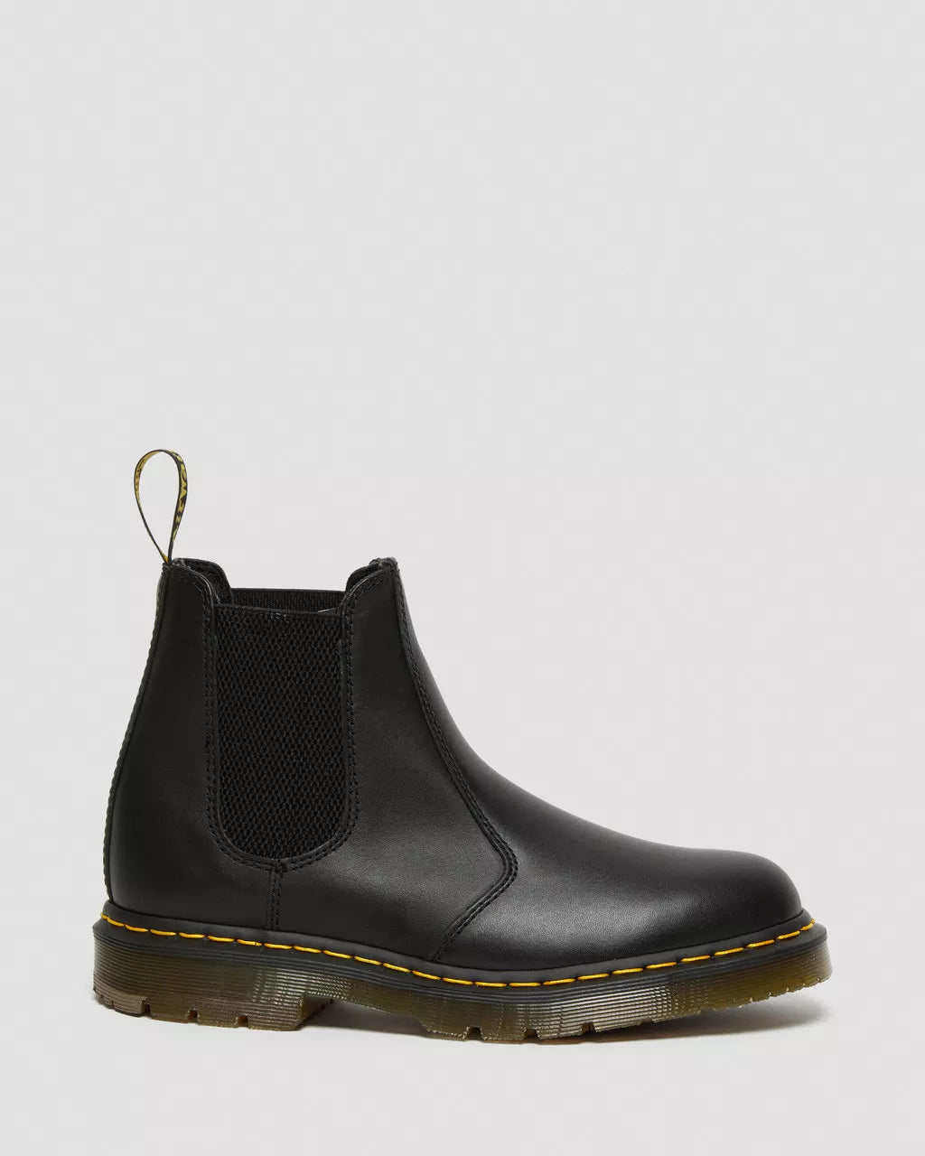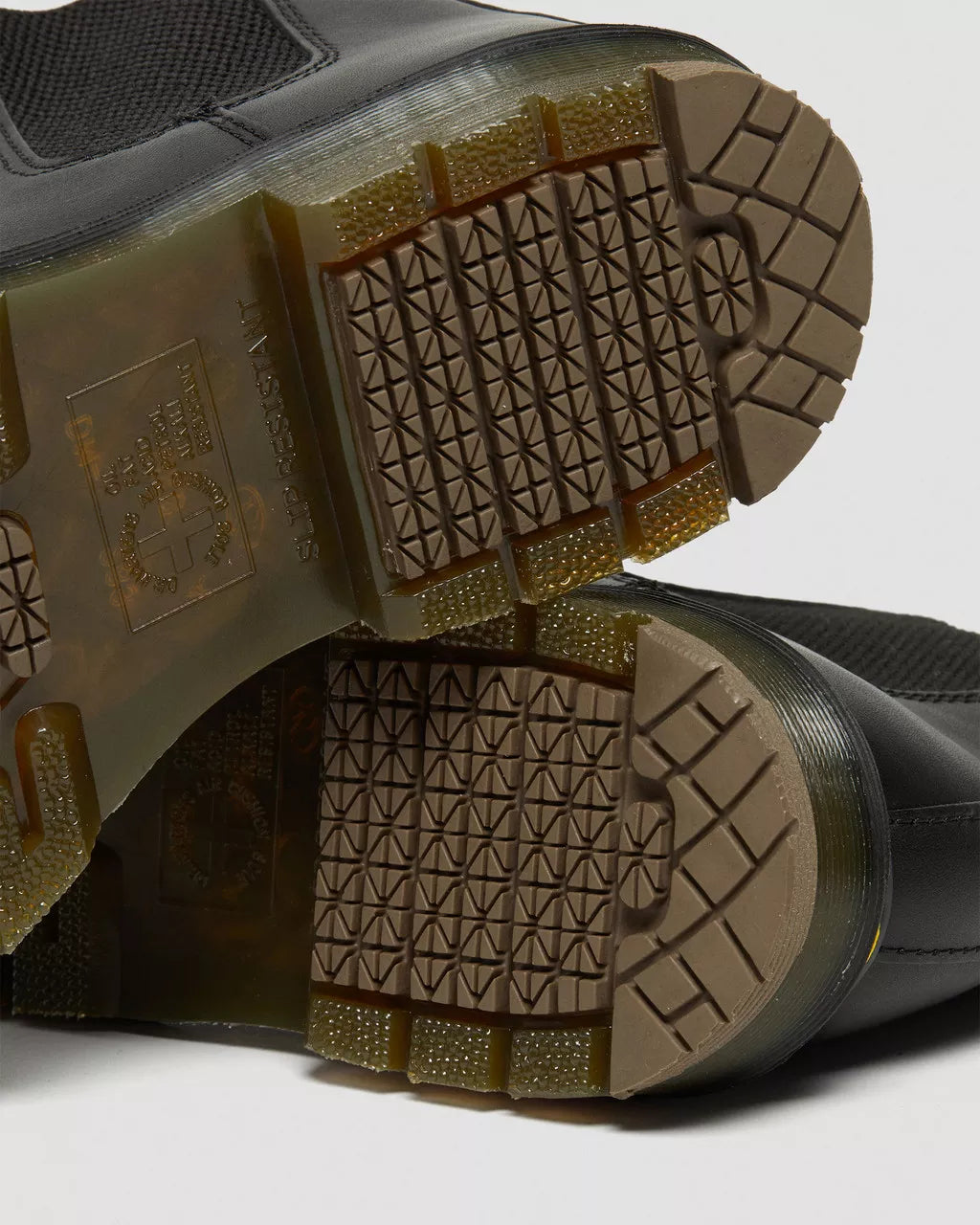 Long days. Long nights. Worn easy. This slip-resistant rework of our classic 2976 Chelsea boot is designed to keep you bouncing from start to finish. Anti-fatigue. Pro-comfort. The pull-on boot is breathable, flexible, and fitted with a memory foam SoftWair footbed for extra cushioning. It’s made with splash-resistant leather and a unique Grip-Trax tread that dissipates water for increased traction on slippery surfaces. Unmistakably Doc’s, the boot is signed with grooved sole walls, yellow welt stitching, and a black and yellow heel loop.