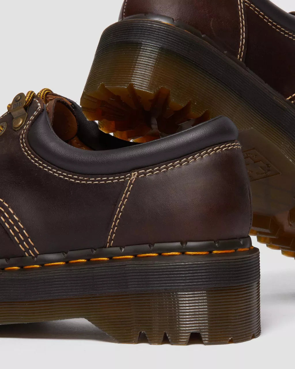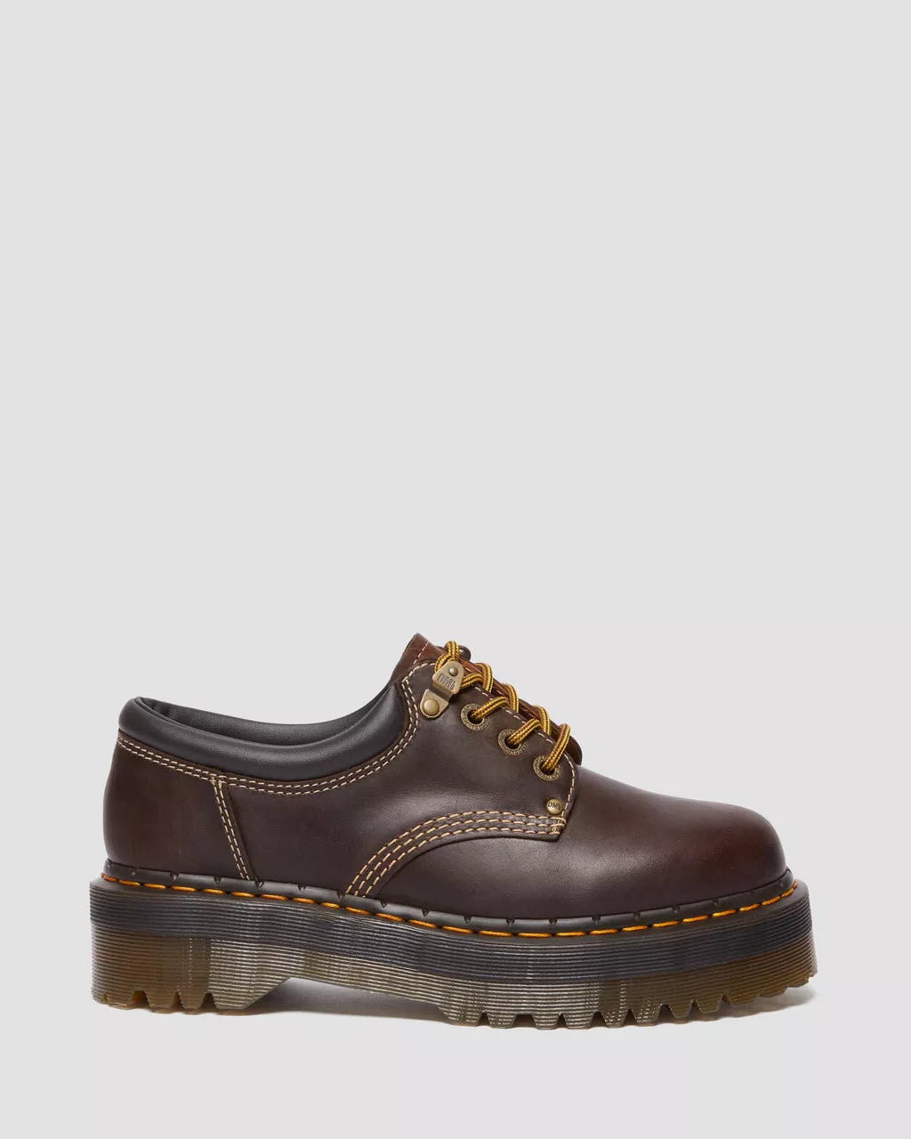 Distressed leather for stress-free wear. We’ve remixed our comfortable 8053 shoe using rugged Crazy Horse leather — and it stands taller on our platform Quad sole. The shoe is stacked with details from heel to toe, including antique brass eyelets, hiker-inspired laces, contrast stitching, and a notched welt. The two-tone sole is marked with our grooving pattern and yellow welt stitching.Sole Height - Platform height: 1 1/2 in; Heel height: 2 inFootbed - Slimmer and a more tapered toe shape