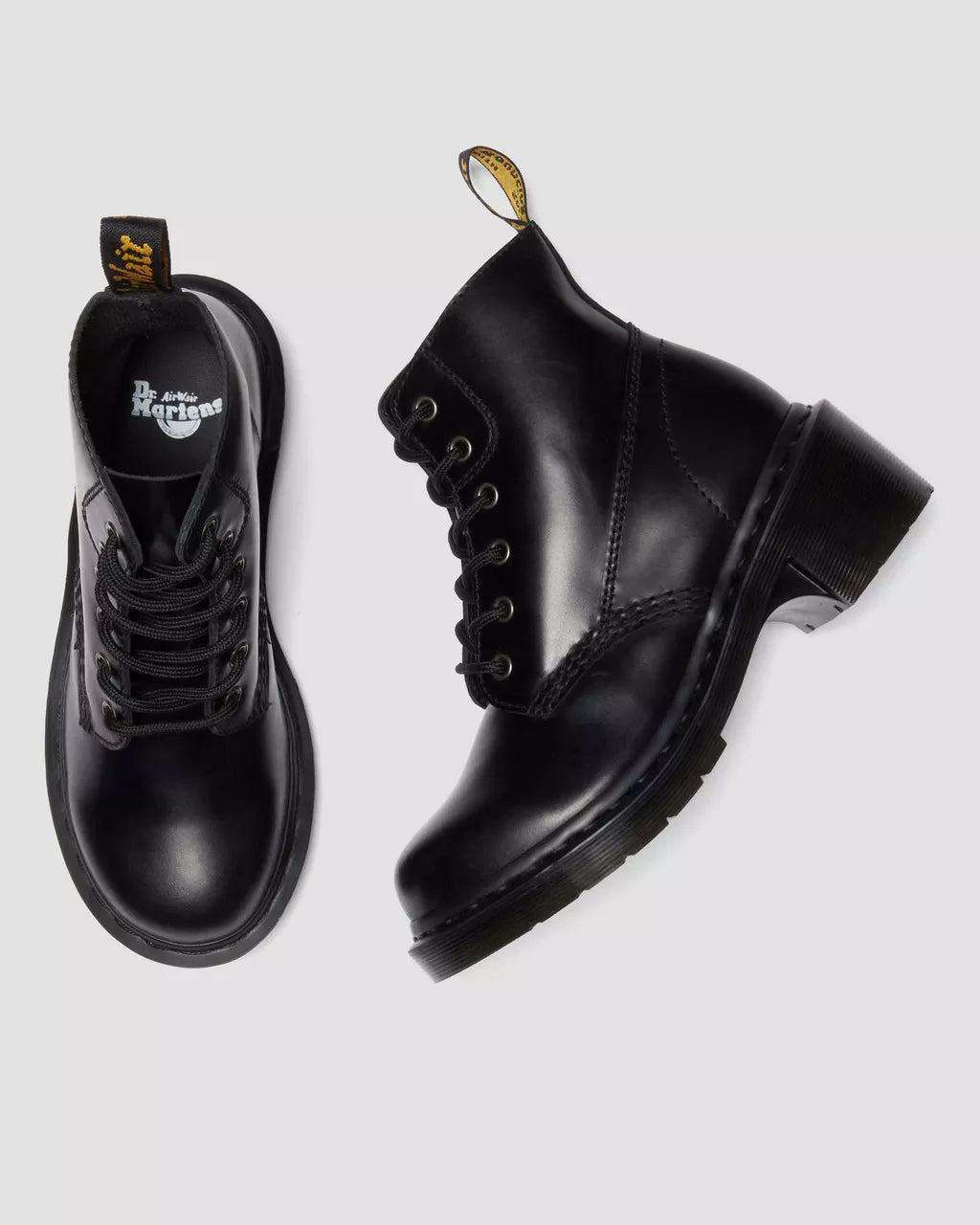 A redefinition of a classic. With lifted form and laced-up detailing, the Alderstone 6-eye boot takes on a more commanding shape. Crafted with Orleans leather that’s known for its smooth look and relaxed feel. We fitted antique silver eyelets, adding black laces and monochrome stitching. Welted with black stitching, the boot is finished with a smoke PVC outsole for extra height.