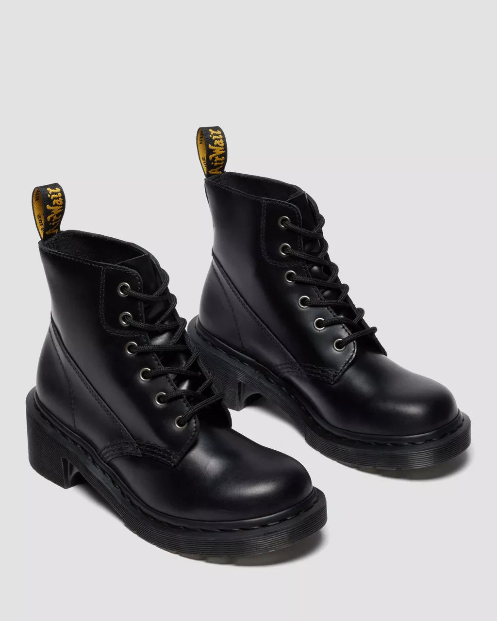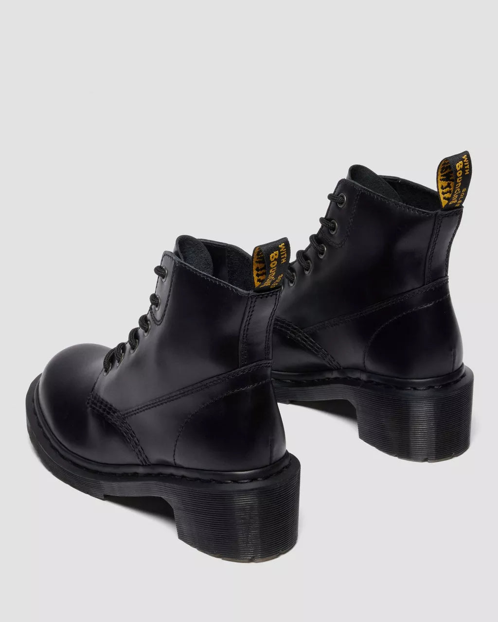 Wipe away dirt using a damp cloth. Apply a neutral or correct colored wax based shoe polish. Buff with a Dr. Martens Shoe Brush to restore shine as desired.