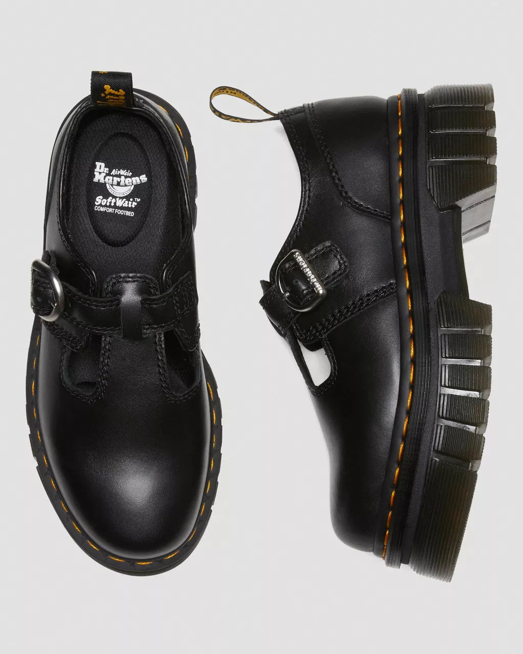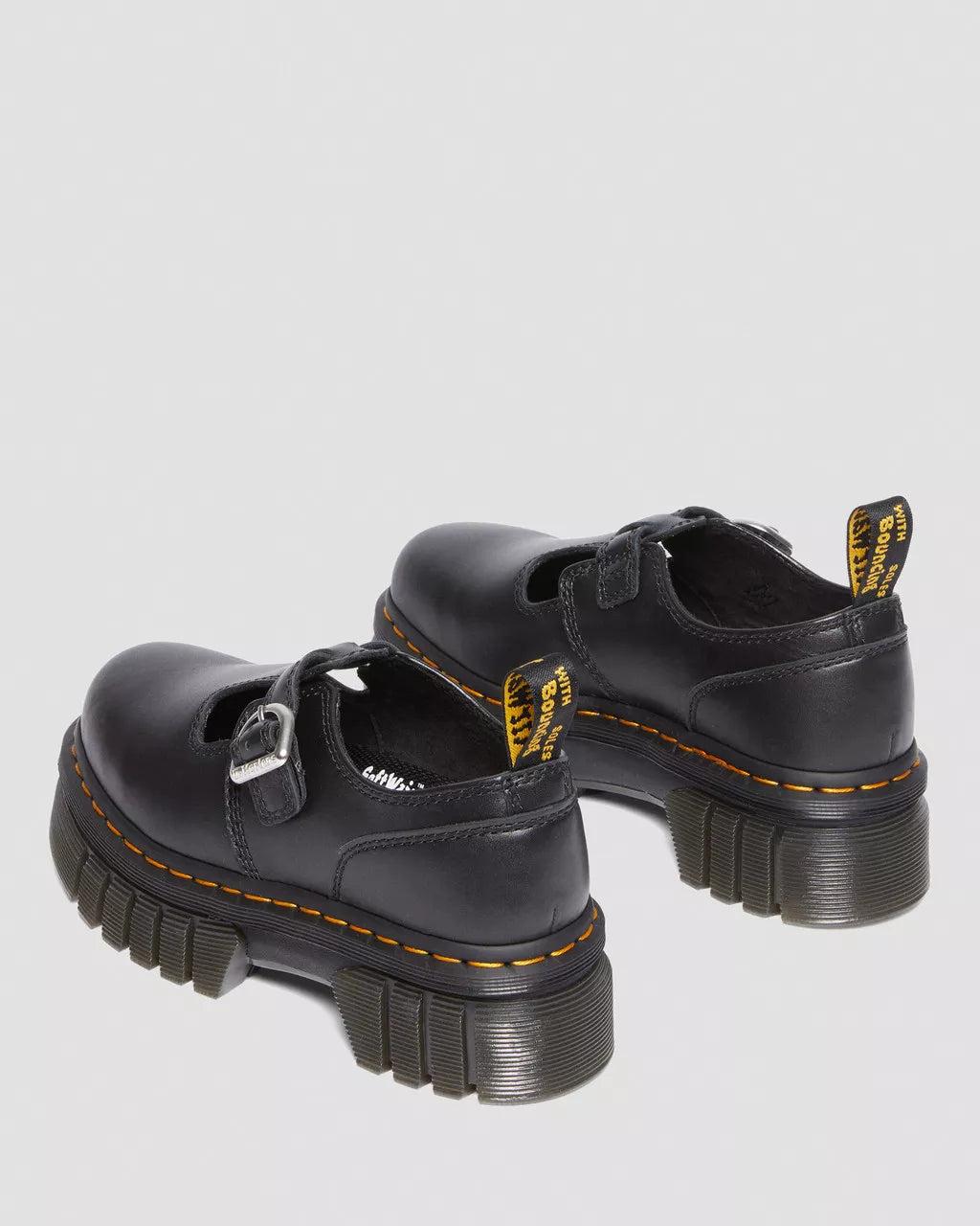 A classic subcultural style, refitted with our innovative two-part sole. We've dialed up the attitude on the classic Mary Jane silhouette — stacked on our Quad Neoteric sole, with deep cleats and an exaggerated side profile. The Audrick T-bar is built from Nappa Lux leather and is detailed with a puritan triple stitch that nods to our construction heritage, alongside the addition of an AirWair heel loop and yellow welt stitching. The shoe is secured with a branded D-shaped buckle and fitted with a SoftWair insole for enhanced comfort.Nappa Lux is a classic Nappa leather — soft and smooth to the touchAdjustable fit with removable SoftWair insoleThis evolved platform packs the height of our renowned Quad Retro sole into a lightweight construction. At 1 7/8 inch, the Quad Neoteric sole has a lightweight EVA midsole and a PVC outsole with deep, rugged cleats. Featuring an amped up version of our trademark DMS tread patternConstruction - Made with our Goodyear-welted lines are heat-sealed at 700˚C and reinforced with our signature welt stitchSole Height - Platform height: 1 1/2 in Heel height: 2 inFootbed - Slimmer and a more tapered toe shape