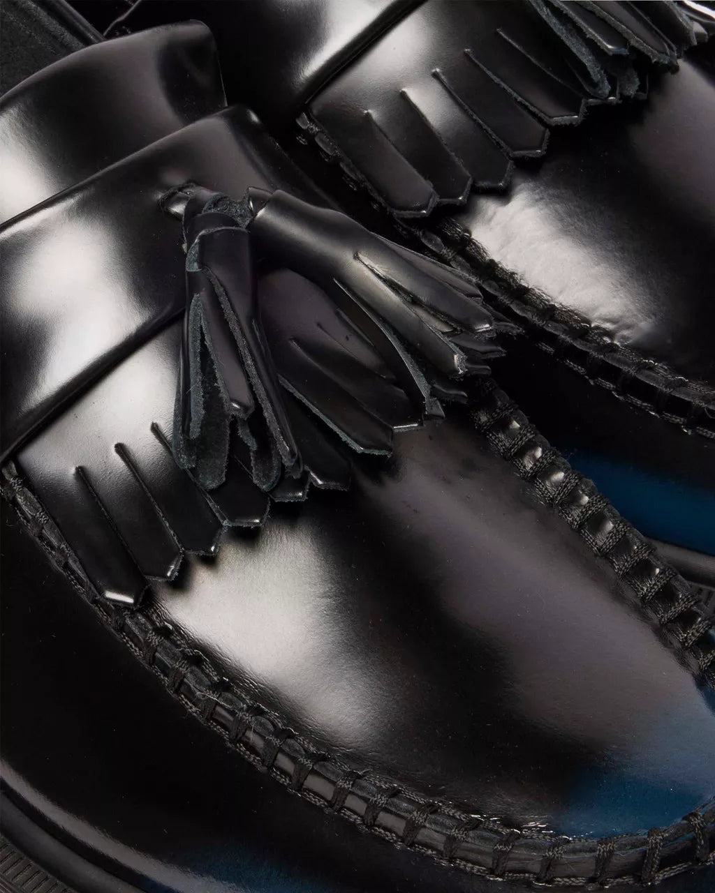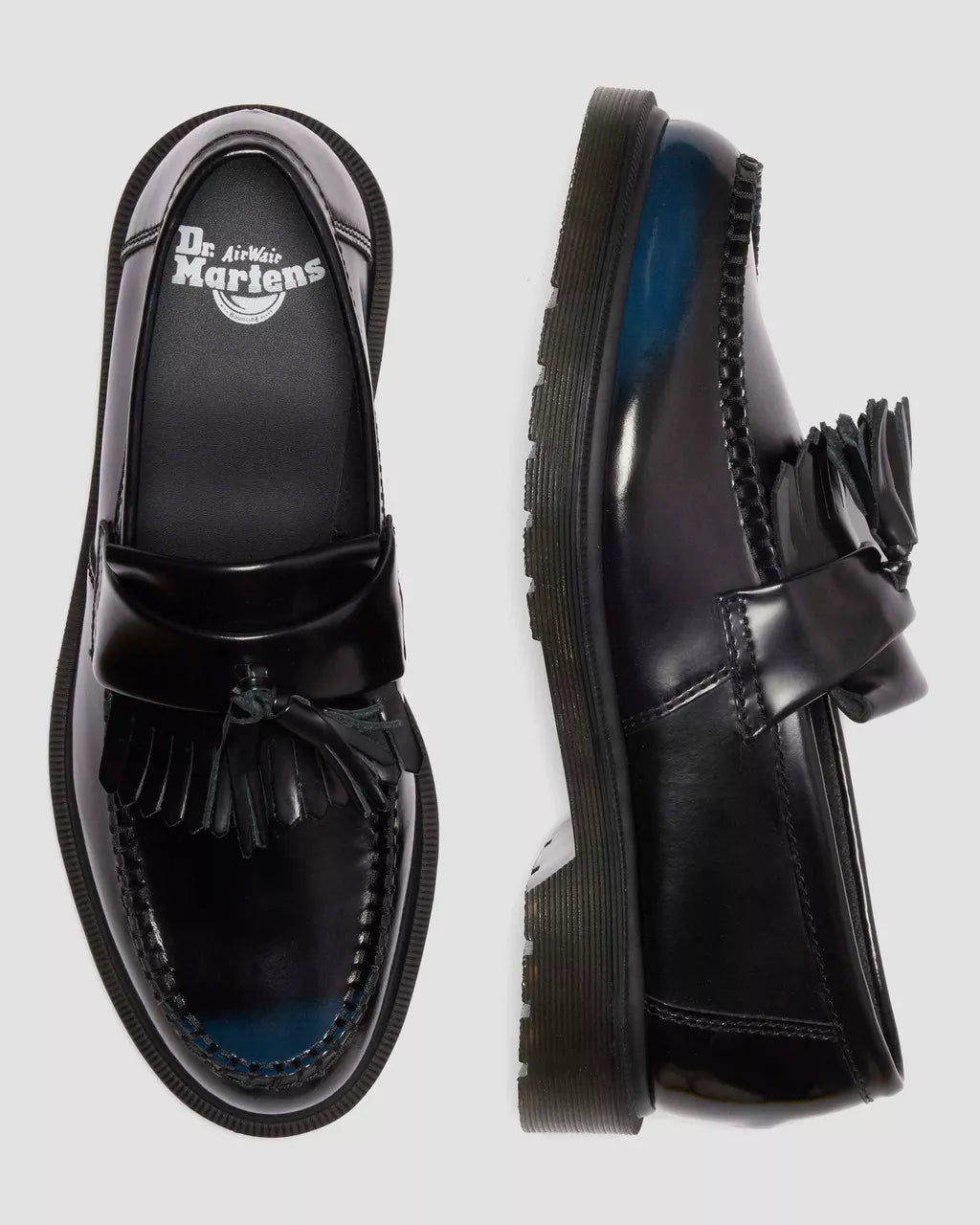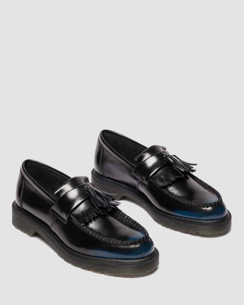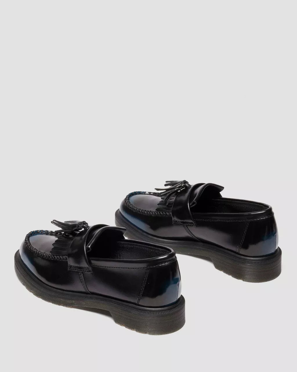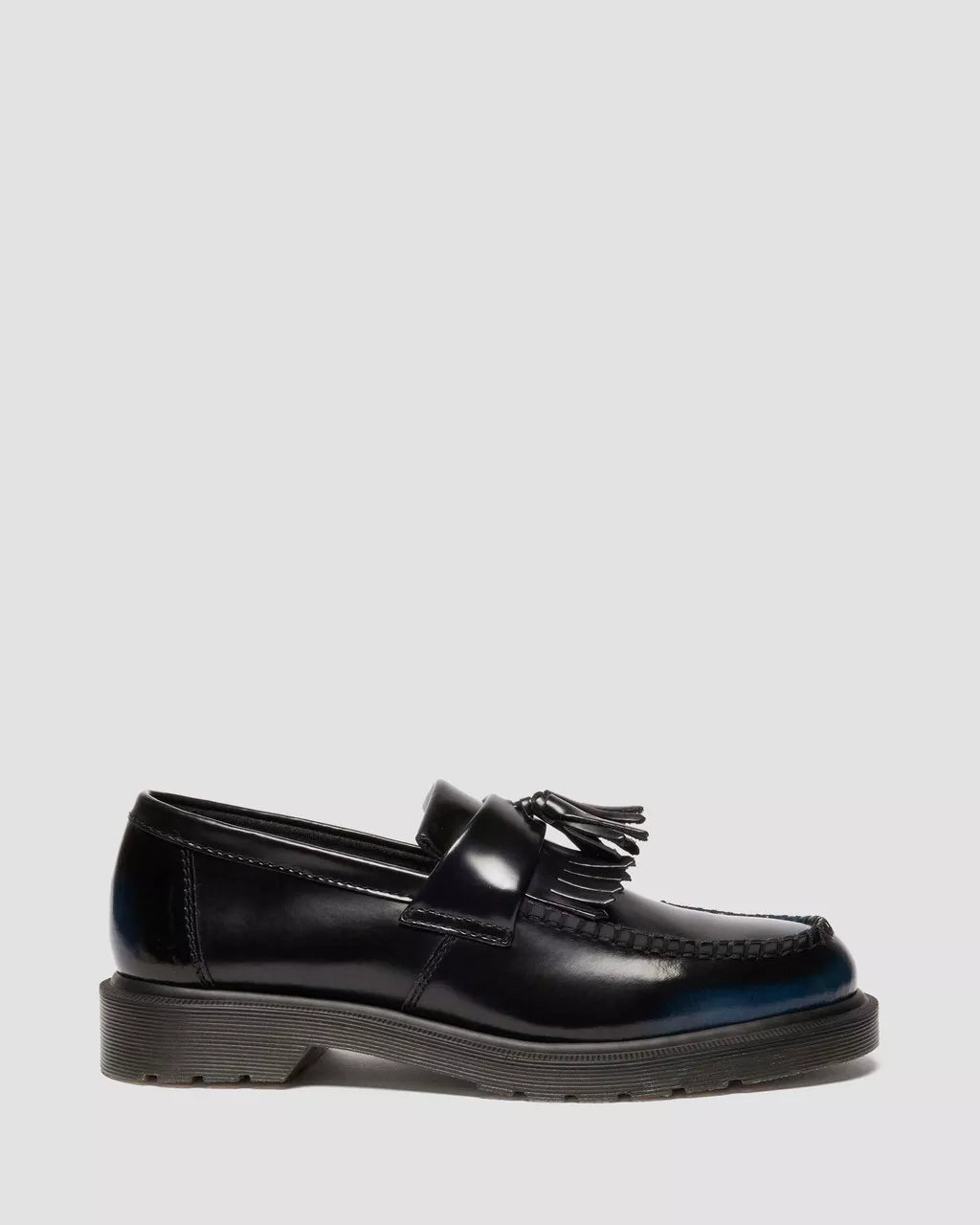 A blank canvas for your story. The Adrian Tassel loafer is revived in Arcadia leather which reveals more color with every wear. Its rub-off finish means the black top coat etches away over time to expose a colored underlayer – making each pair unique. A meeting ground of the experimental and traditional, the loafer stays true to classic Adrian detailing, featuring a tassel and apron, a plain welt and a signature DMS sole in trans.