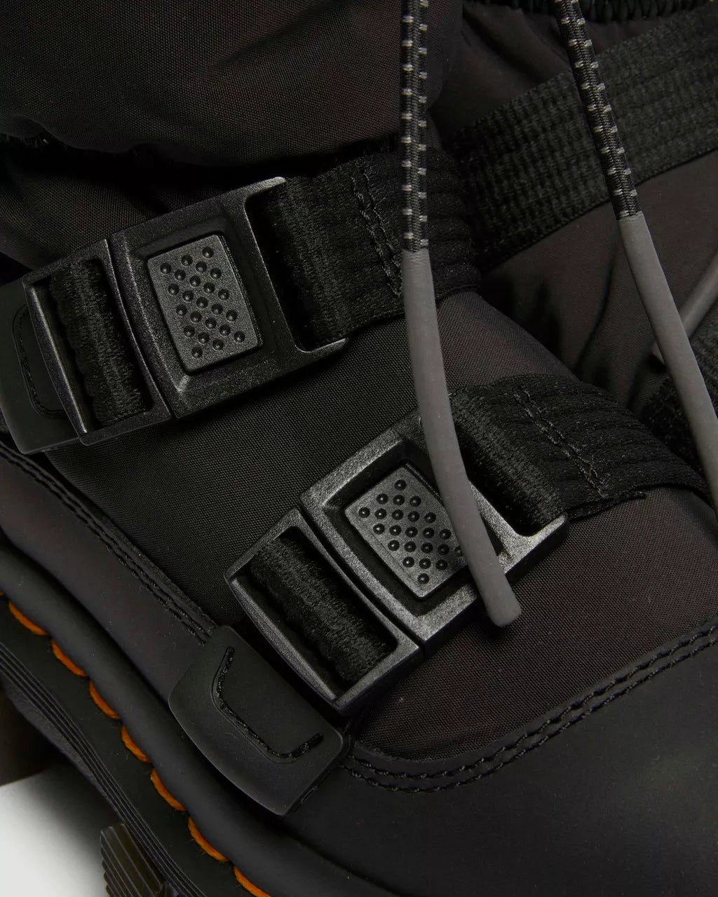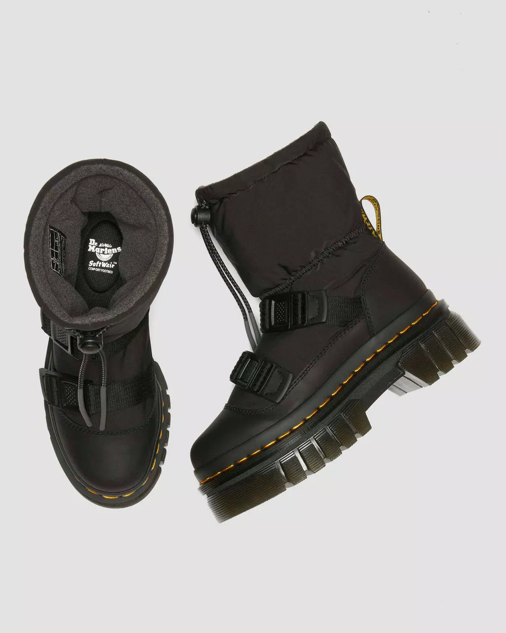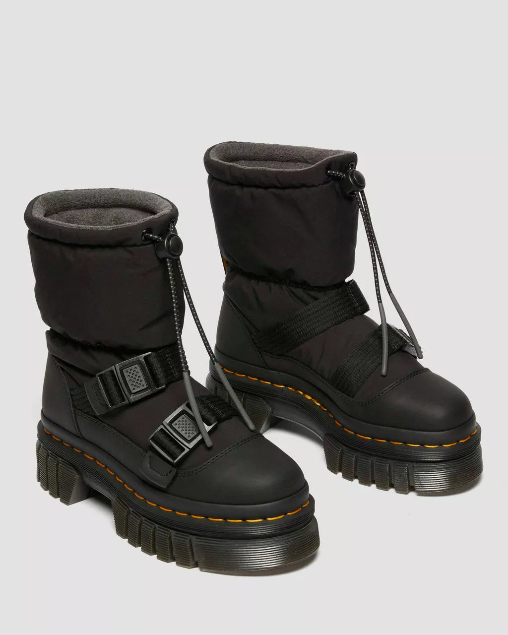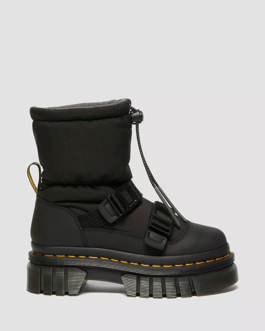 Built to resist the elements. And demand attention. Standing on our bold, lightweight Quad Neoteric sole with exaggerated cleats, the Audrick Puffer Lo boot subverts a traditional silhouette with maximalist design. Fitted fleece-lined, lace fastened Poly Woven puffer and water, salt and grit-resistant Snowplow leather. Finished with twin fast-release buckles inspired by mountaineering hardware. Snowplow is a water-resistant edition of our classic Crazy Horse leather, with an oily finish and a rugged, beaten-up appearance.Taller. Lighter. Bolder. This lightweight platform sole combines lightweight EVA with rugged PVC. Marked with our signature grooving and deep cleats.Our Goodyear-welted lines are heat-sealed and reinforced with our signature welt stitch.