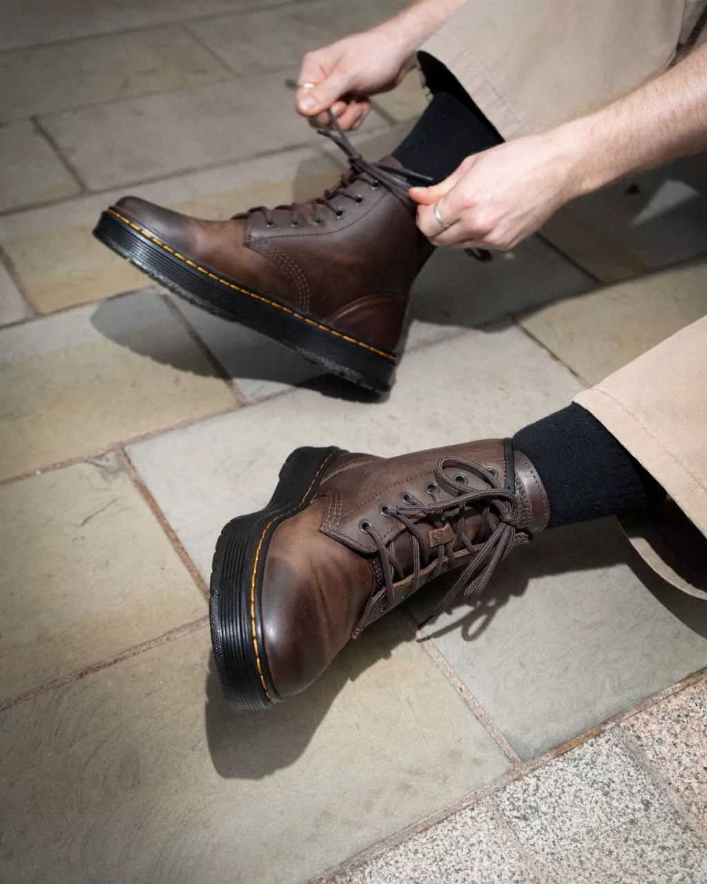 Wipe away dirt using a damp cloth. Apply Dr. Martens Wonder Balsam to the outside of your footwear to keep the leather supple, strong and smooth. Once dry, buff vigorously to desired shine using a clean Dr. Martens Shoe Brush. Repeat regularly to prolong the life of your footwear.
