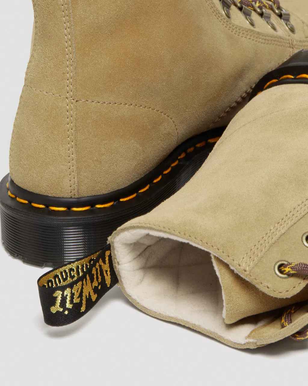 The Barton is our rugged take on a winter boot — an exaggerated rework of our Original 8-eye silhouette lined with thermal quilted PrimaLoft® for superior insulation against harsh conditions. Handcrafted in our original factory, welted on our tough commando BEN outsole and built from Repello Calf suede. Enhanced with D-ring hardware, hiker-style laces and a padded collar for added comfort and a snug fit. Finished with our signature yellow welt stitching and a gold scripted AirWair heel loop.Made in England at our original Wollaston factoryPrimaLoft® creates durable, premium insulation fabrics designed to provide warmth and comfort while keeping feet dry — without adding bulk or weightRepello Calf is a rugged fine-grade suede leatherConstruction - Made with our Goodyear-welted lines that are heat-sealed at 700˚C and reinforced with our signature welt stitchFootbed - Slimmer and a more tapered shape