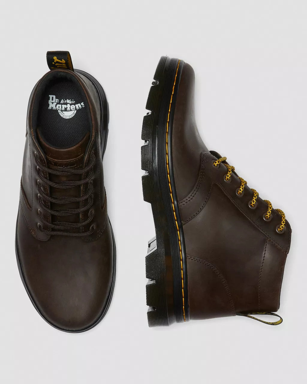Casual meets classic. Our utilitarian Bonny boot had been given a dynamic rework. Now constructed from Crazy Horse, a heavyweight leather that looks beaten up and broken in from step one, the boots are finished with yellow stitching and a black and yellow heel loop.Crazy Horse is heavyweight leather with a tough, worn-in appearance giving a pre-loved finish without the hard workCore Dr. Martens DNA: grooved edges, an AirWair heel loop and visible stitchingMade with a comfortable, durable cemented construction