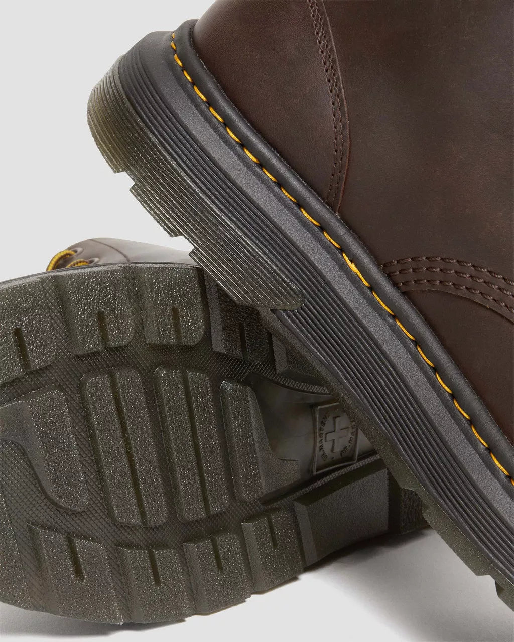 Taking cues from our 6-eye 101 silhouette, the Crewson Chukka boot unites our heritage markings in one of our lightest ever constructions. Engineered with functionality in mind, the boots are set on a new lightweight edition of our classic sole and fitted with internal padding to keep you comfortable. DM's DNA comes through in the yellow stitching, yellow and black heel loop and a Dr. Martens deboss branded tongue patch. Crazy Horse is an oiled leather designed to mark with time — scuffing and folding uniquely to every wearerOur lightest air-cushioned sole yet. The Crewson sole fuses rubber and PU in a new utilitarian constructionConstruction - Made with a flexible cemented sole construction for all day comfortFootbed - Wider and a more rounded toe shape