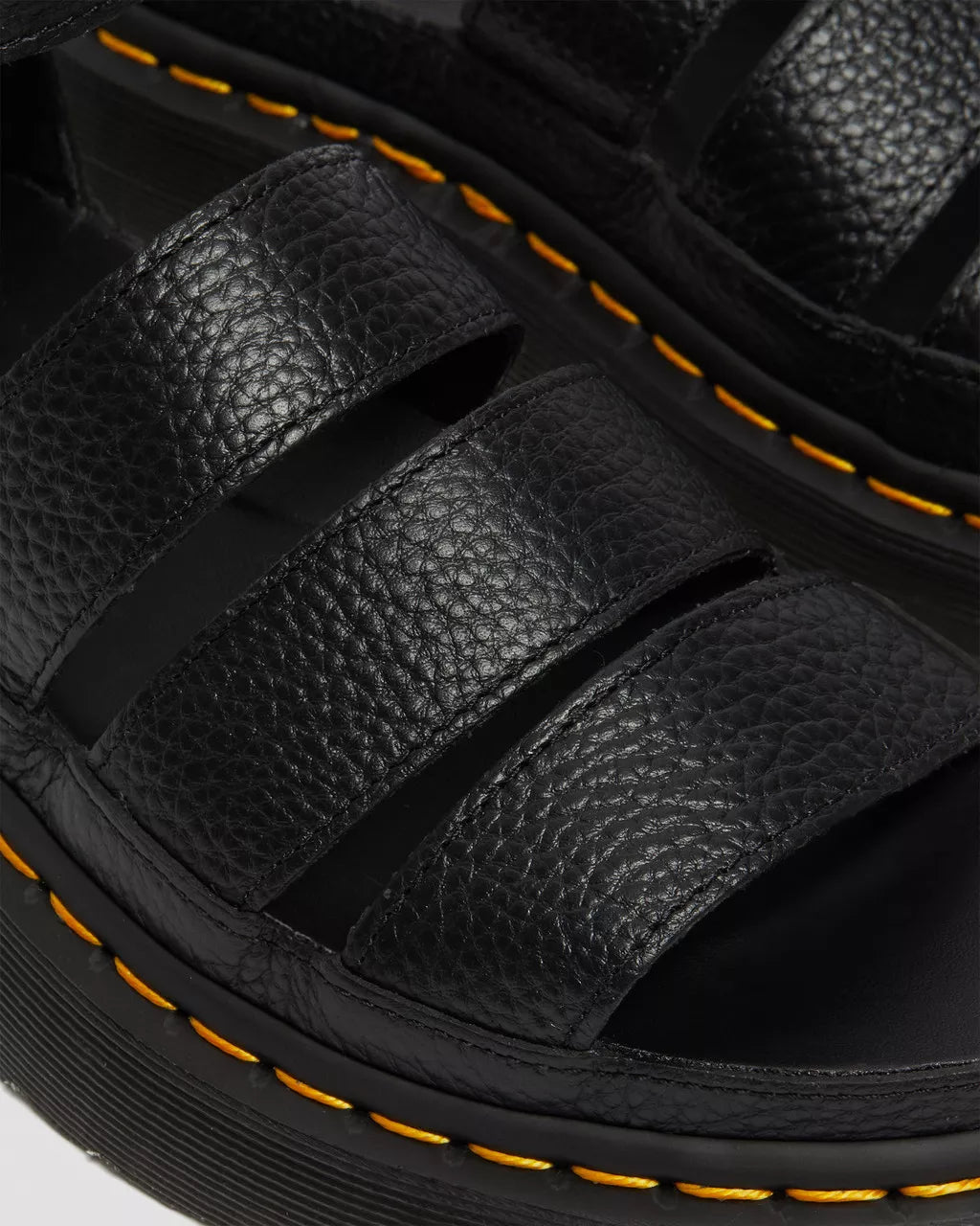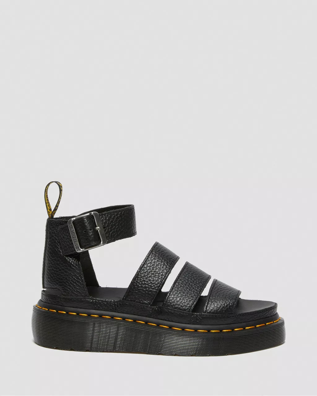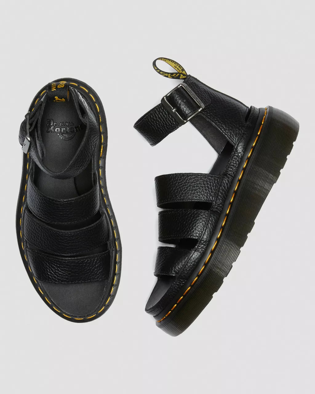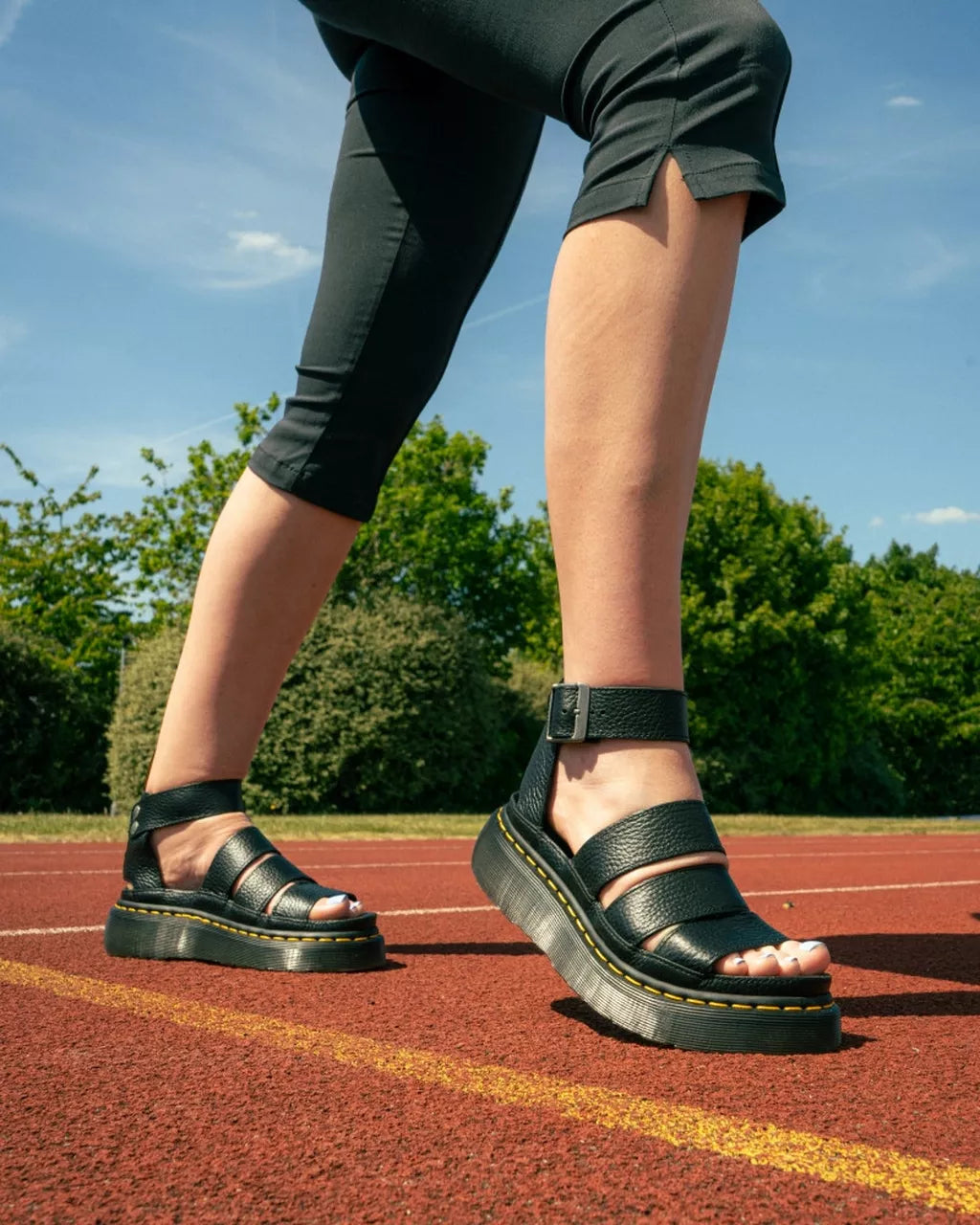 The Clarissa II Quad is the same classic gladiator sandal we always make — with three straps, an adjustable buckle at the ankle and all the Docs DNA — but now, it's got an empowering boost and an extra dose of attitude thanks to an extra-high platform sole.Gladiator style sandal Adjustable ankle strapMade with classic Docs DNA, including grooved edges, a heel-loop and visible stitchingMade with Milled Nappa, a soft, supple pebbled leatherConstructed on the iconic and comfortable Dr. Martens air-cushioned soleBuilt to last with a durable Goodyear weltPlatform height: 1 in; Heel height: 1 1/2 in