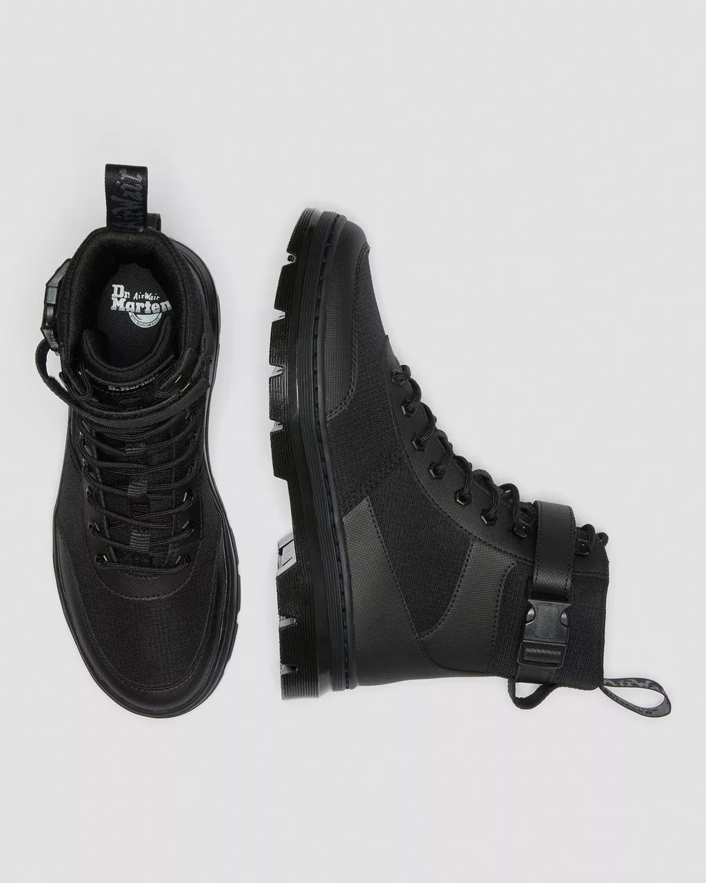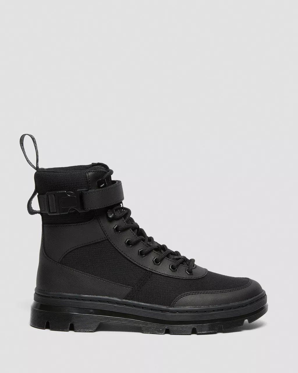 Inspired by the streets they're worn on: in our Casual collection, we rework our classic silhouettes through a contemporary, urban lens. Built from a tough-yet-light mix of leather and high-grade Poly, these boots are comfortable from the first step. The 8-eye Combs Tech takes cues from our Original 1460 lace up boot, and comes with tonal hexagonal eyelets, an AirWair heel loop and an adjustable and removable strap.Element is a split leather with a fine geometric emboss patternBuilt with core Dr. Martens DNA: grooved edges, an AirWair heel loop and visible stitchingMade with a comfortable, durable cemented construction