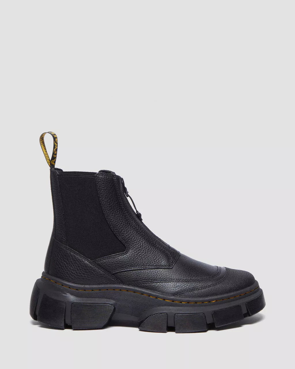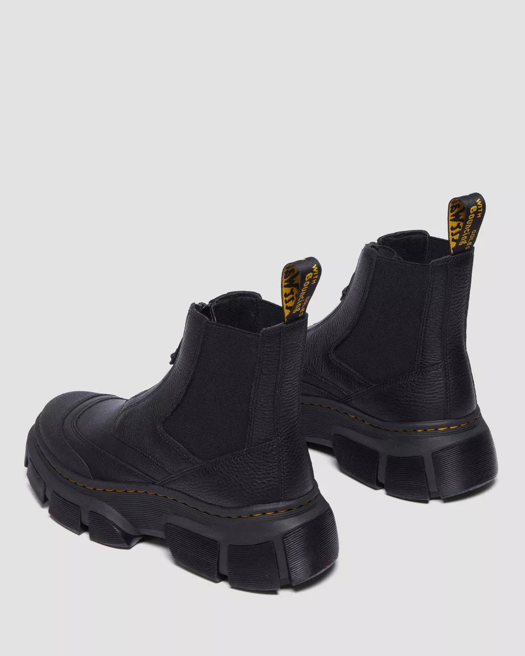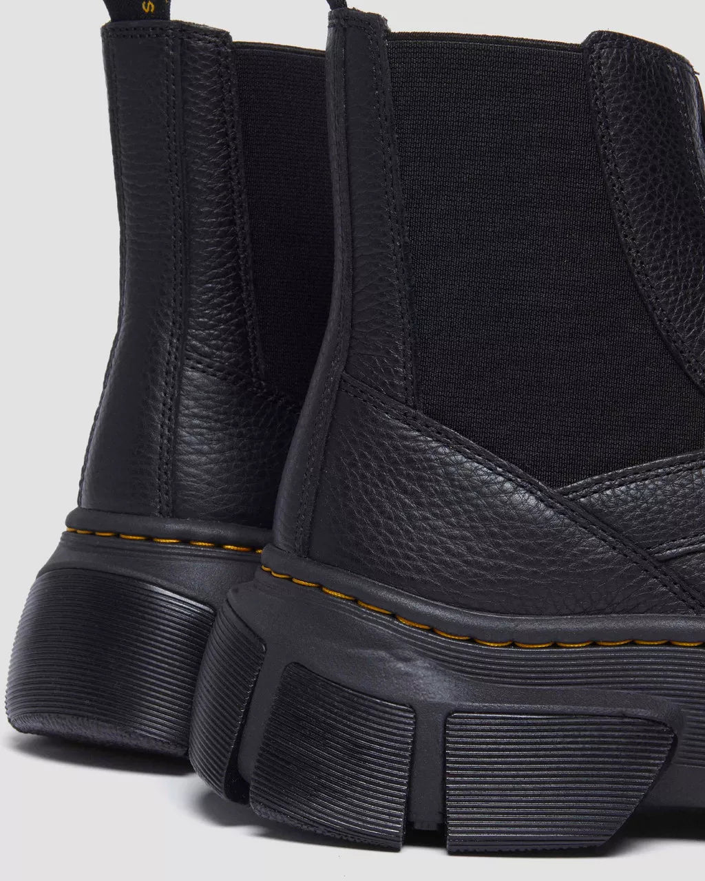 Big sole. XL comfort. The DMXL sole is made to move — looks tough, feels easy. Our 2976 Chelsea boot is reimagined with our blown-out DMXL sole. Combining lightweight EVA with durable PVC pods and an exaggerated tread. Fitted with a SoftWair insole for cushioning and support on the move. The upper is made from soft Lunar and Rubber Grain leather and has a front-facing zip and elasticated gusset that makes it easy to slip on. Signed with yellow stitching and our black and yellow heel loop