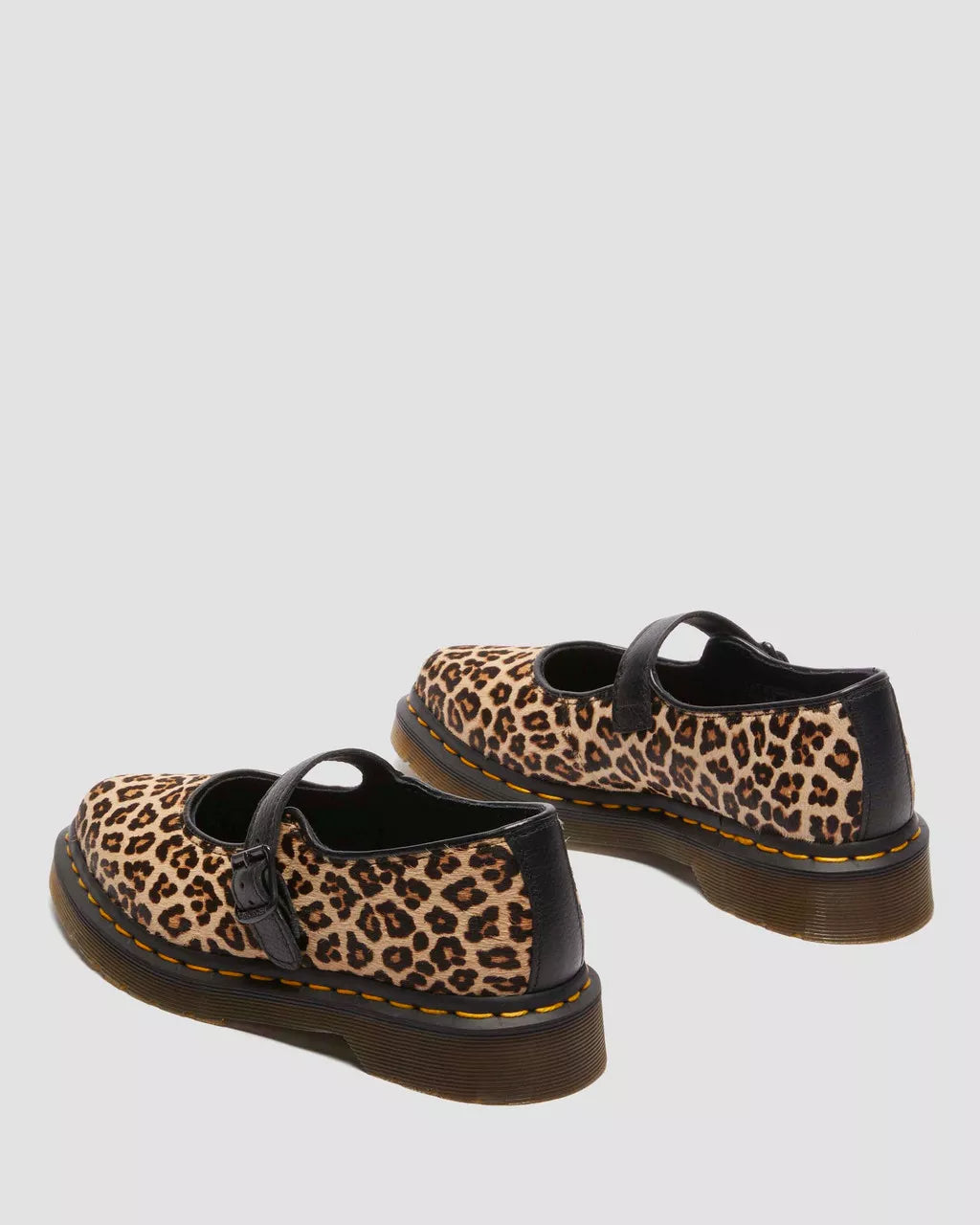 Get to the point. The Elphie Mary Jane shoe is our twist on a classic. Less dainty. More Doc’s. A pointed ballet flat shoe made from statement Hair On leather with a mini leopard print. Fastened with a soft leather strap with a DM’s branded buckle. The tapered sole is marked with DM’s signature grooving pattern and secured with yellow welt stitching.