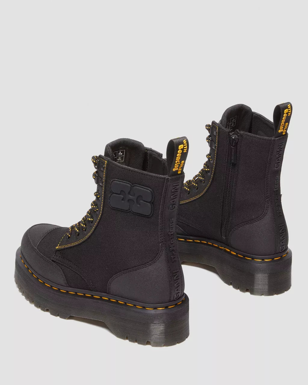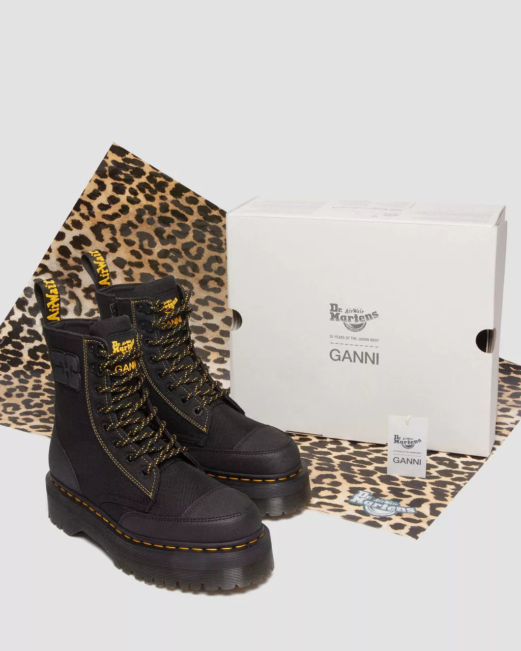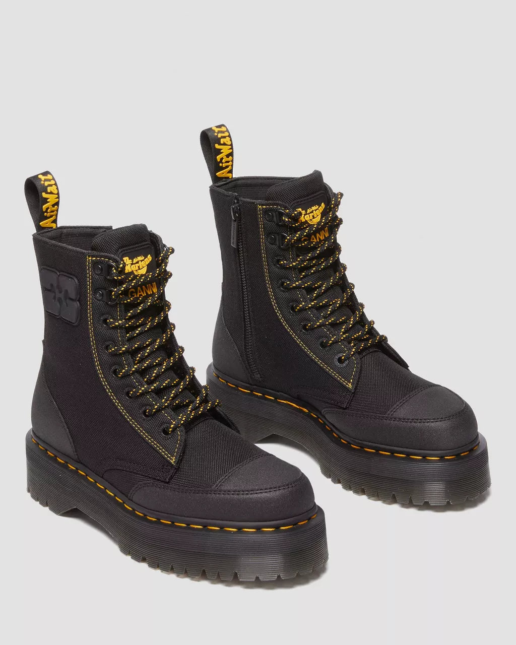 Cool just got tougher. Our first collaboration with GANNI sees two brands collide over a shared ethos: dressing in attitude. Defying convention. And doing things differently. This mindset is applied to our rework of the Jadon boot. Engineered with Extra Tough nylon. Additional yellow DM’s stitching. And recycled polyester laces that nod to GANNI’s obsession with alternative materials. This is the boot for anyone that wants to take up space and be unapologetically themselves. You’ll also find the GANNI butterfly on the side of each boot, as well as a dual-branded tongue and rubber strip down the back.Extra Tough 50/50 is an extra tough, synthetic woven fabric with exceptional strength and elasticity. Made with 50% recycled plasticBuilt to embolden. Our towering platform sole takes our silhouettes to new heights — for people who aren't afraid to stand tallOur Goodyear-welted lines are heat-sealed and reinforced with our signature welt stitch