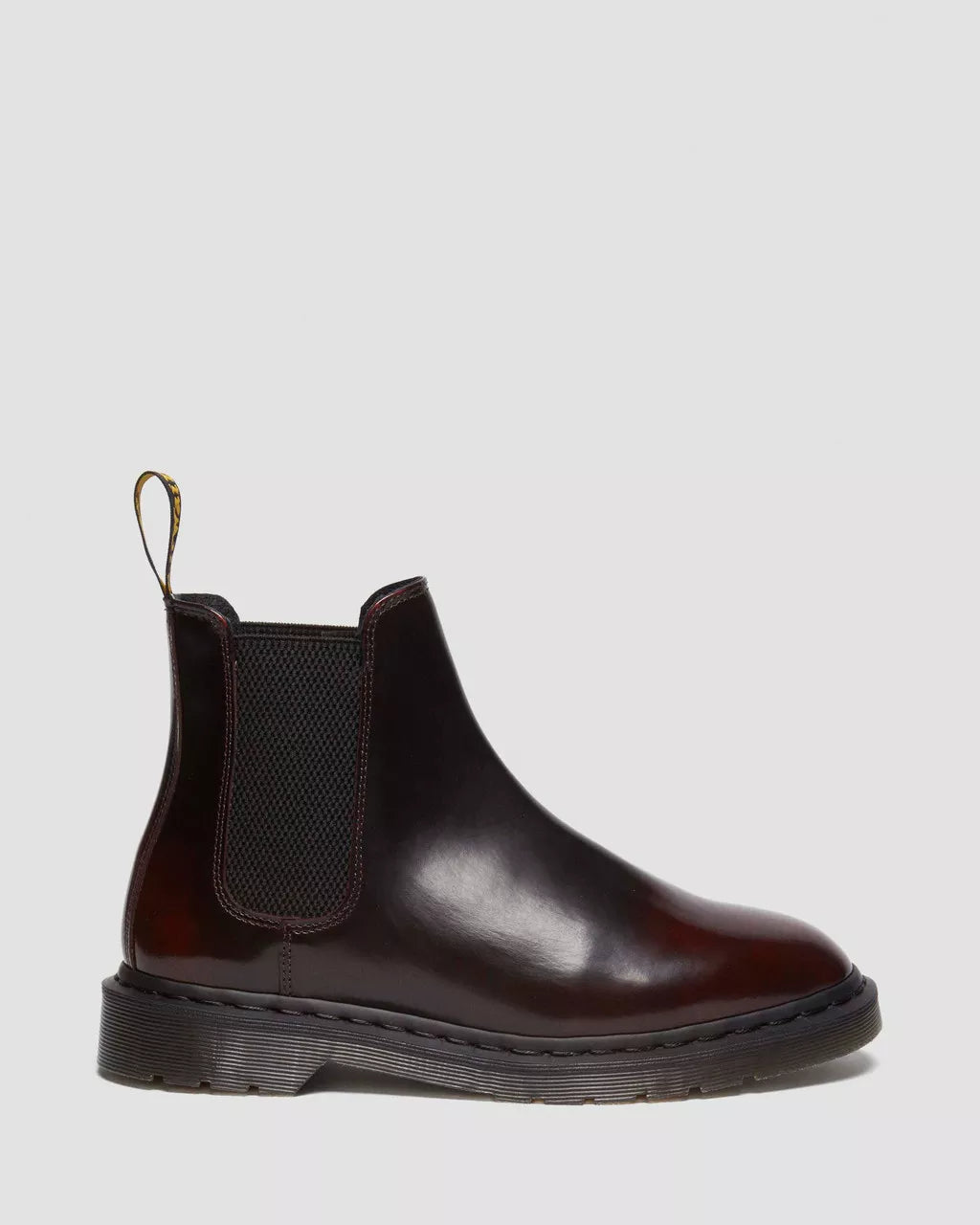 Keep it classic. The Graeme boot is a slimline take on our signature Chelsea boot silhouette — built on a tapered last to create a sharper profile. Fitted with elasticated gussets so that you can easily slip it on and off. The black sole is marked with our signature grooved edge and secured with black welt stitching, and the top of the boot is tagged with our heel loop. This version of the Graeme boot is made from two-tone cherry red Arcadia leather, which rubs off over time to reveal a contrasting base color.