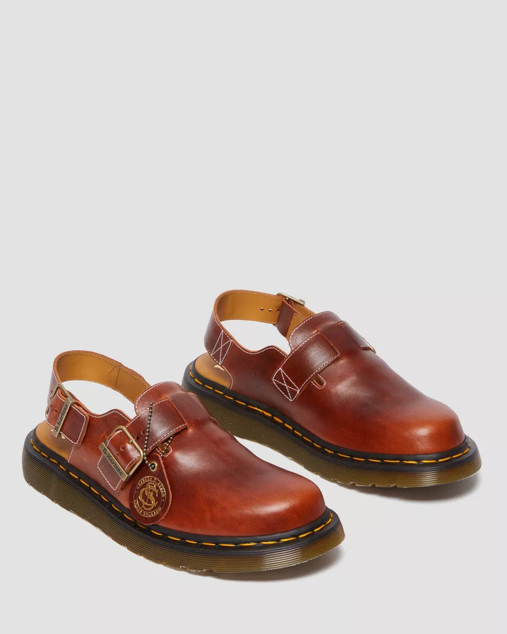 Handcrafted in our Northamptonshire factory, our Jorge mule fuses effortless style with meticulous construction. This new rework uses C. F. Stead’s premium, waxy Classic Calf leather. The slip-on is punched with heavyweight contrast stitching across the upper and fitted with antique brass buckles for adjustable comfort. The sandal stands on our Shore outsole — marked with signature grooving and a DM’s yellow welt stitch. The buckle is tagged with a detachable C. F. Stead swing tag.Made in England at our original Wollaston factoryClassic Calf is a premium smooth, waxy leather with a natural finishThis style runs small, we recommend sizing upConstruction - Made with a Goodyear-welted lines that are heat-sealed at 700˚C and reinforced with our signature welt stitchFootbed - Slimmer and a more tapered toe shape