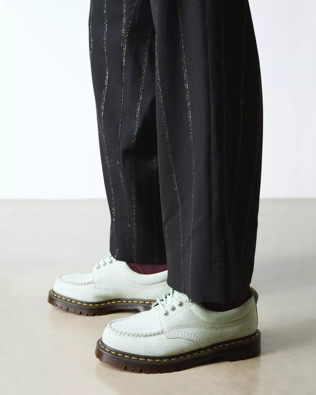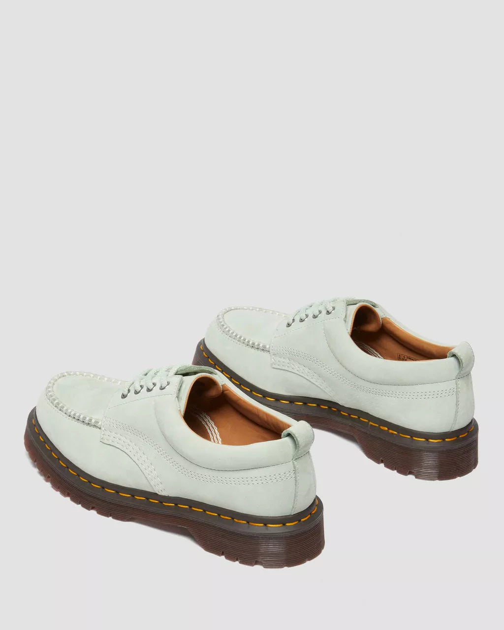 A summer wearever. The 4-eye Lowell shoe but pastel. Built from easy-wearing Buttersoft Nubuck leather with a padded comfort collar. Fitted with tonal laces and contrast silver eyelets. Secured to a trans BEN outsole with a traditional DM’s yellow welt stitch.