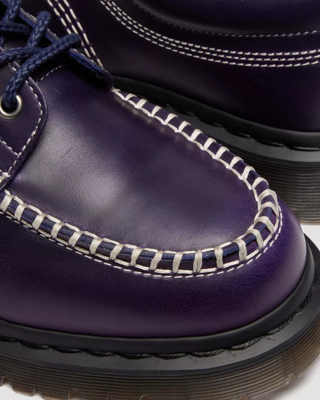 The Lowell blends contemporary aesthetics with archival workwear designs. A 4-eye shoe constructed from midnight blue Orleans leather with a comfort-focused padded collar. Highlighted with ecru stitch detailing and finished with a moc toe. The Lowell stands on a rugged BEN outsole and secured with a black welt stitch.