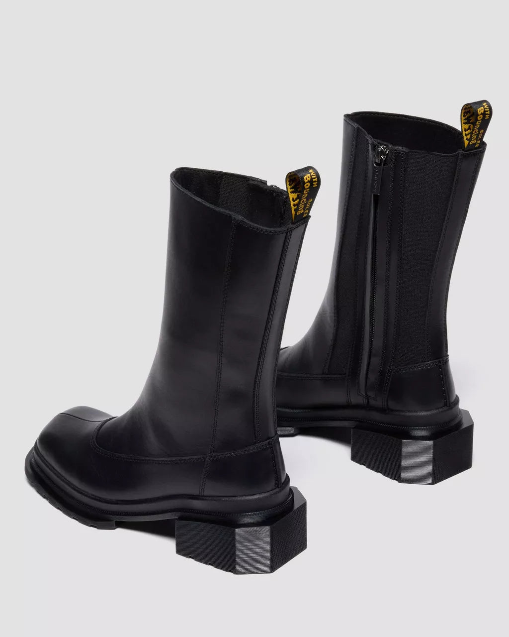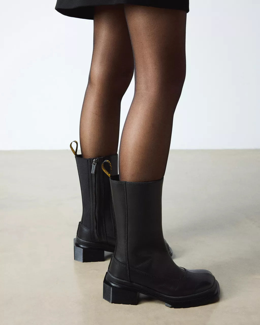 A refined edge. Our square-toe Maybole Chelsea boot in an extra tall silhouette. Crafted from lightweight Wanama leather. Fitted with inner zip for ease of wear. Each pair is set on a heeled angular outsole. Finished with our AirWair heel loop.