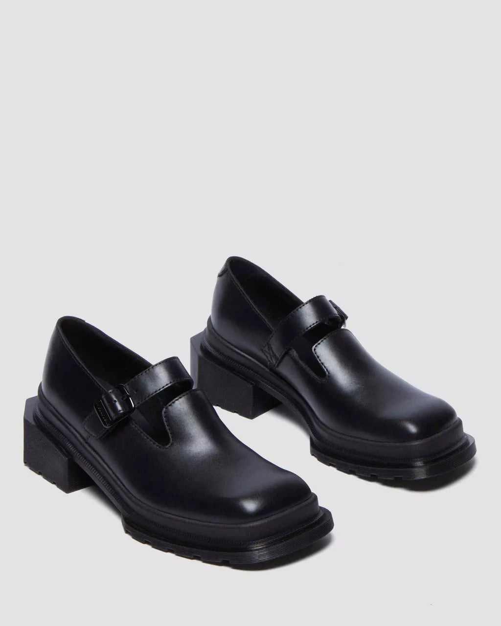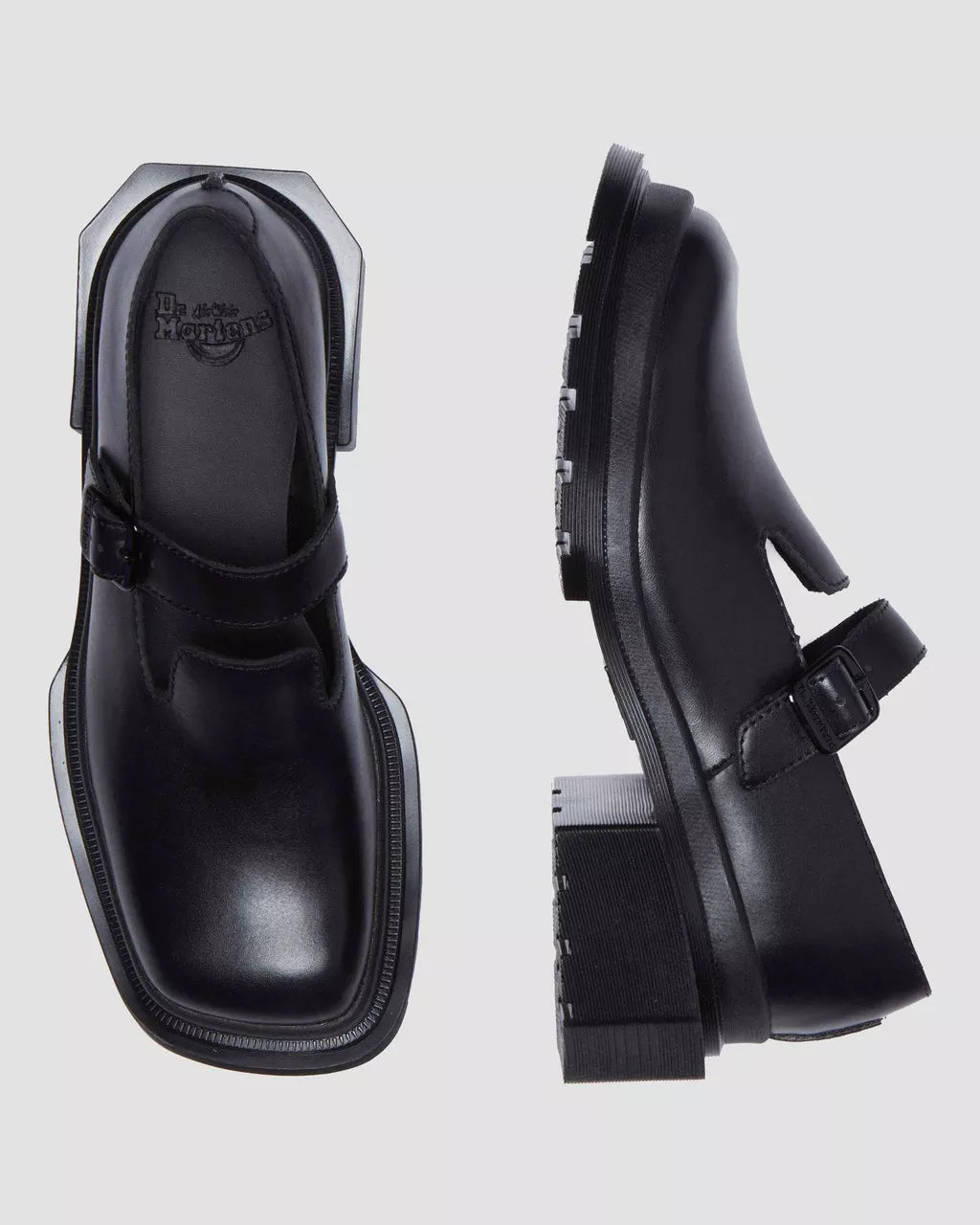 Be square. The Maybole MJ shoe is an unconventional take on the classic heeled Mary Jane silhouette. An extended, angular new sole emphasises and exaggerates the square toe upper. The low-profile sole is marked with our signature grooving pattern, with distinctive corners around the outside of the heel. The strap is secured with a single, adjustable branded buckle.Wanama is a lightweight leather with a satin-sheen finish. Clean with a damp cloth and care with Dr. Martens Shoe Polish.