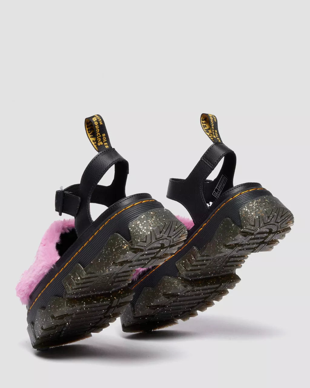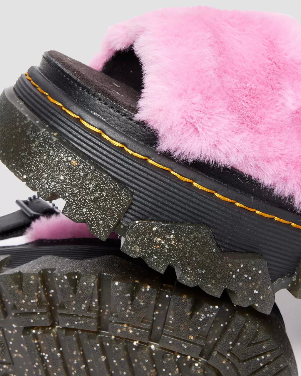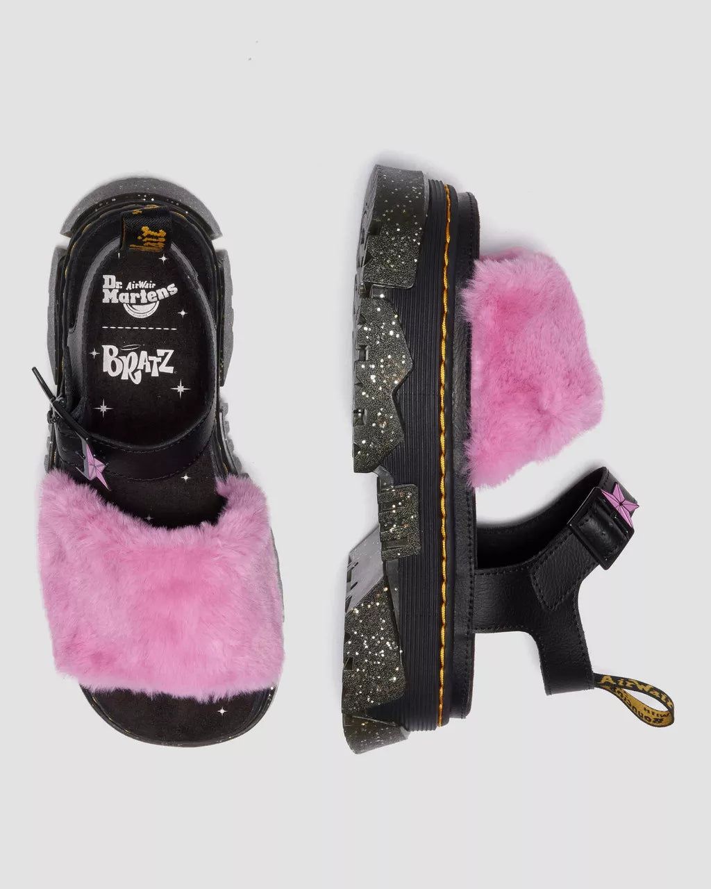 Ready for my close-up. Our newest sandal sole gets a Bratz-approved update in the Mattison Strap sandal. The Mattison is an unmissable new platform sole – designed in comfortable EVA with an exaggerated PVC tread that extends up the side walls to create a jagged pattern. This one gets a dose of bratitude with a glittery sole and a fluffy faux-fur strap across the foot. It’s finished with a star buckle, a Bratz dog tag charm, and signature DM’s details in the heel loop and yellow stitch.