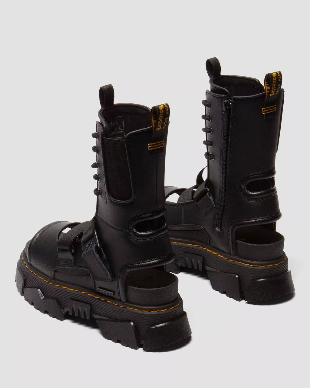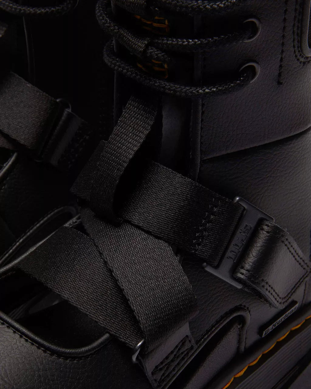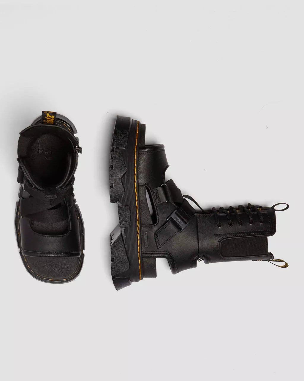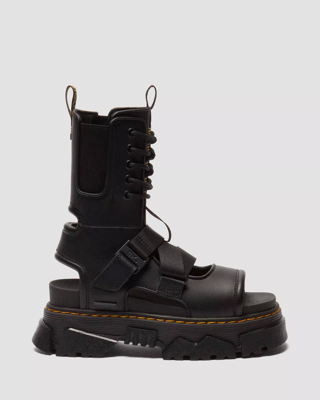 Strapped. Laced. Sandalled. The Mattison Gladiator sandal stands on our unmissable new Mattison platform sole. A comfortable EVA midsole and chunky PVC tread that extends up the side walls for a standout side profile. The sole is also marked with signature DM’s grooving and yellow stitching. And it’s not just the sole that will grab attention. The soft Virginia leather upper is secured with a webbing strap and black rope laces, with a pull tap on the tongue and a black and yellow DM’s heel loop on the back. Elasticated panels and cut-outs in the leather provide flexibility across the silhouette.
