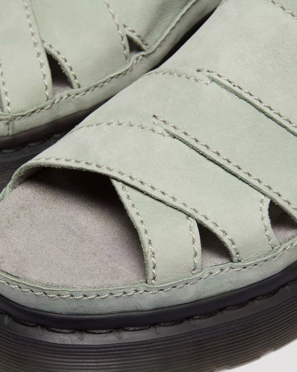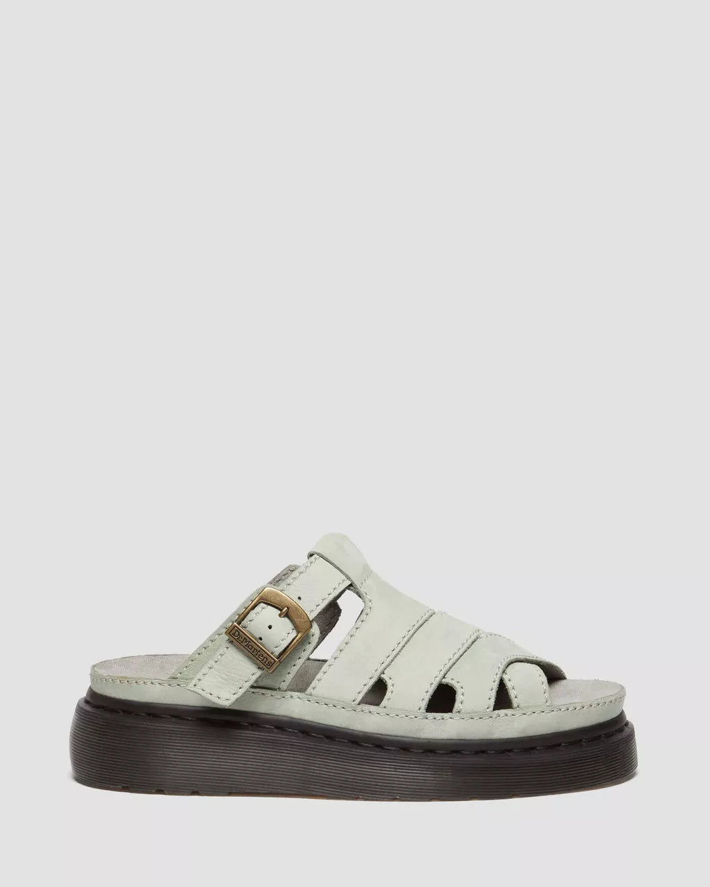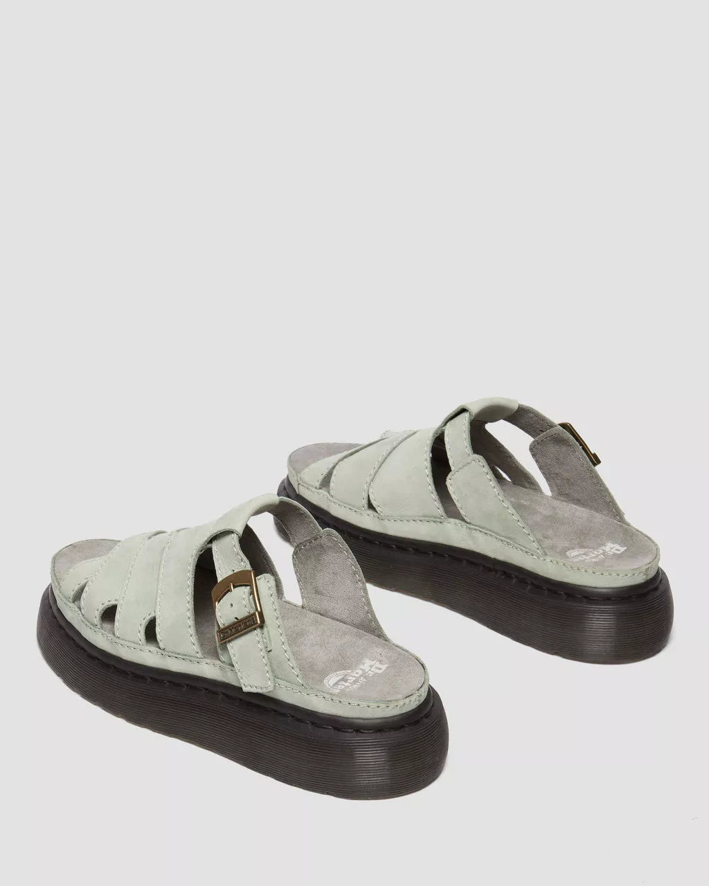 Air-cushioned and air-conditioned. The Maxxy Slide sandal is a 90s-inspired design you won’t want to take off. The ventilated upper is made with naturally tumbled Buttersoft nubuck leather in sage green. Built with a suede-covered foam footbed for enhanced comfort and an adjustable buckle to help you find the perfect fit. Our grooved, air-cushioned Quad Shore platform sole is secured with a durable Goodyear welt and sewn with black welt stitching.