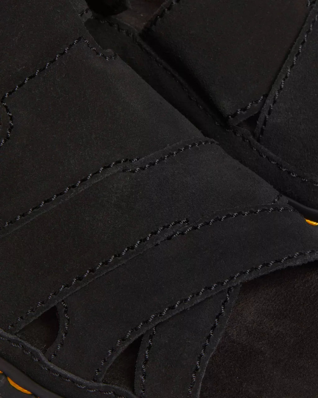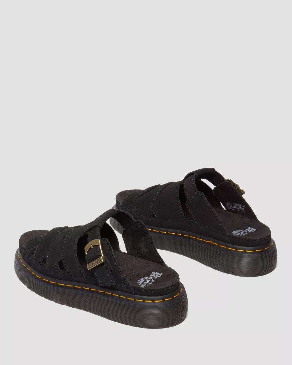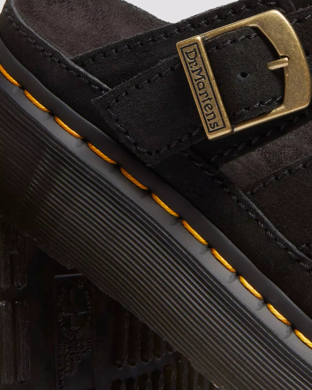 Air-cushioned and air-conditioned. The Maxxy Slide sandal is a 90s-inspired design you won’t want to take off. The ventilated upper is made with silky EH Suede in black. Built with a suede-covered foam footbed for enhanced comfort and an adjustable buckle to help you find the perfect fit. Our grooved, air-cushioned Quad Shore platform sole is secured with a durable Goodyear welt and sewn with our classic yellow welt stitching.
