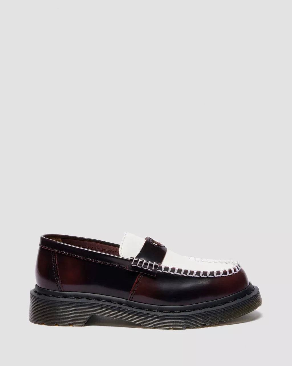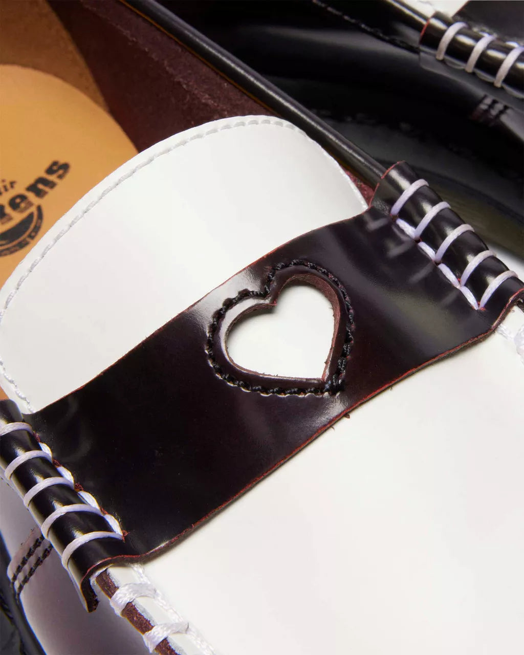Reimagined with heart. The Penton loafer makes standout features its charm – while delivering classic DM’s quality. A heart cut-out on the saddle sits front and center, and is surrounded by a contrast Smooth leather apron and stitching. The saddle and upper are crafted with Arcadia, a tough two-tone leather that rubs off to reveal more color with wear. Black stitching lines the welt and the loafer is finished with a trans DMS sole.