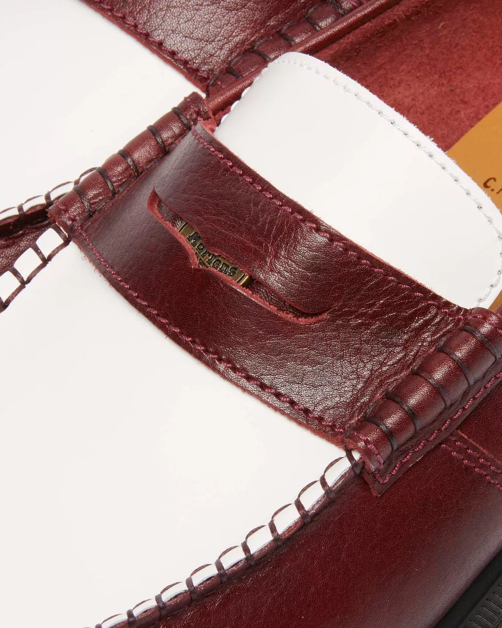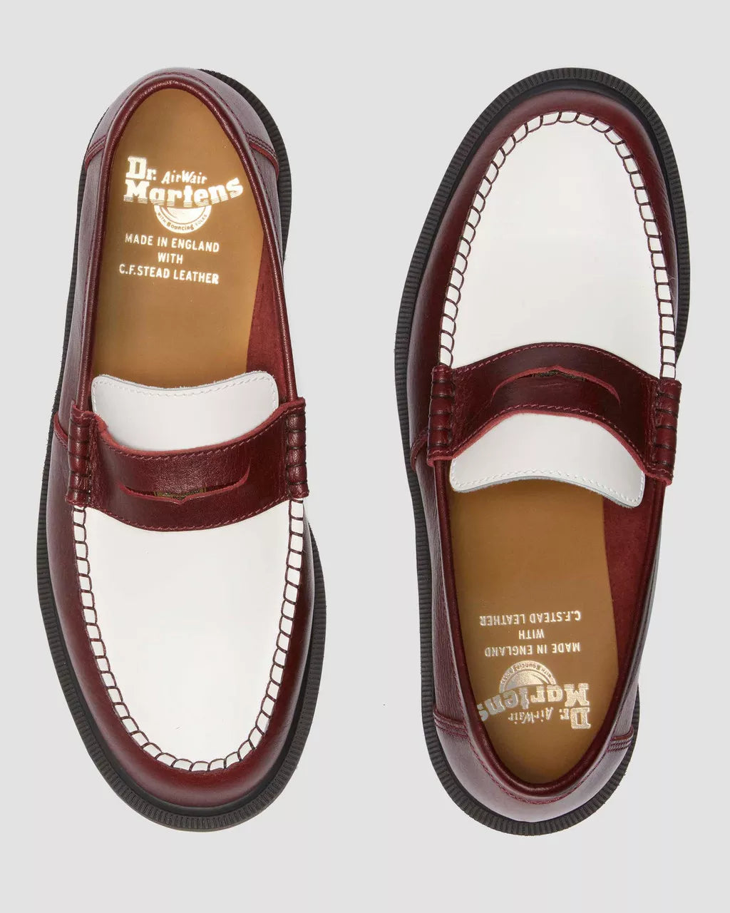 A two-tone statement. Our refined Penton loafer handmade in our Northamptonshire factory from premium Classic Calf leather contrasted white Smooth leather across the vamp. Each shoe is fitted with a subtle DM's gold penny. Set on a DMS sole with a discreet plain welt.
