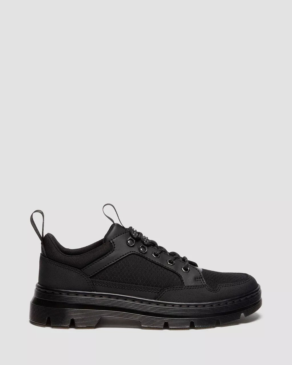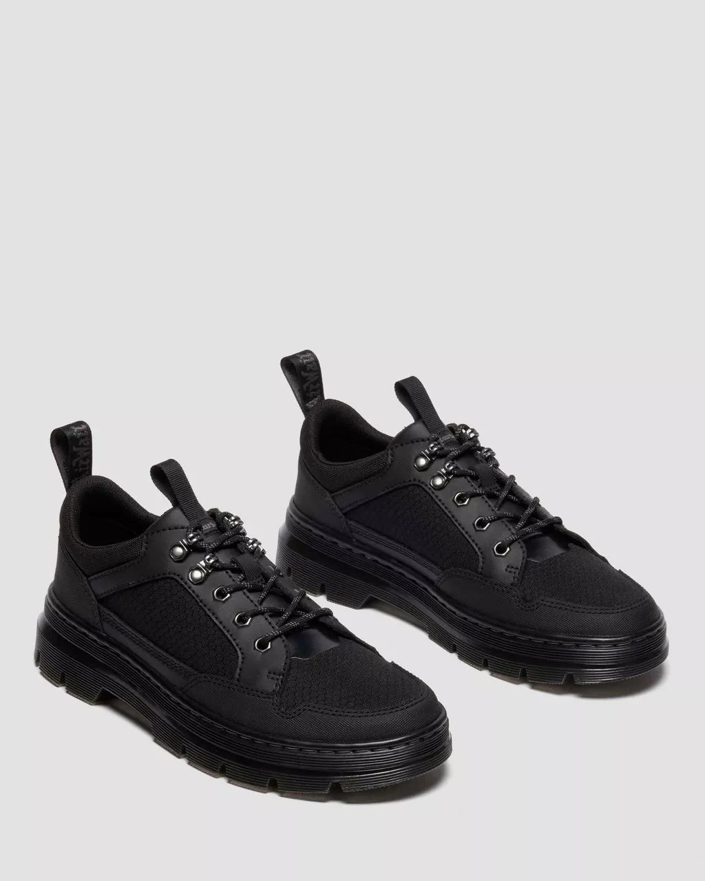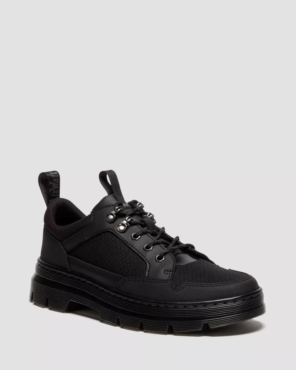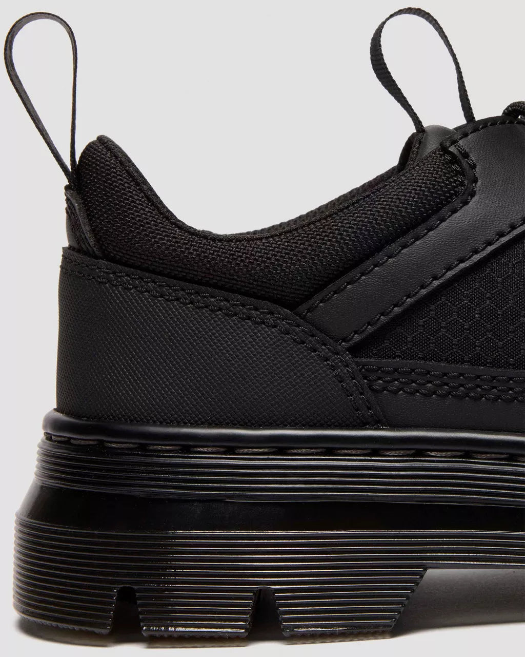 Technique for all terrain. The 5-tie Reeder MK.02 shoe is built to withstand it all – combining innovative materials and experimental craft. Made with Ajax, a PU-coated embossed suede, and Recycled Hexagon Canvas, the silhouette is extra tough – and extra tactile. Classic DM’s DNA is reworked in a monochrome heel loop and welt stitching. The shoe sits on a utility-inspired Tract sole that’s tough but light – and pavement-ready.