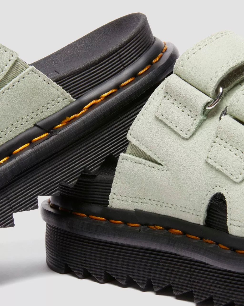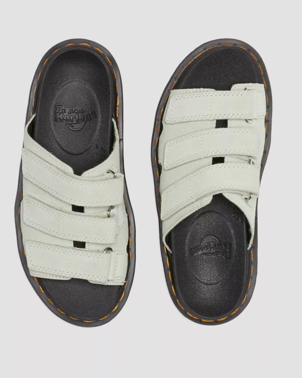 Slide into summer. Our new Raine Slide sandal combines a slider�s easy on/off convenience with our lightweight EVA Zebrilus sole and a comfortable SoftWair footbed. The upper has 3 adjustable Ripstop straps to help you find the perfect fit. The sole is marked with grooving and secured with DM�s yellow welt stitching.