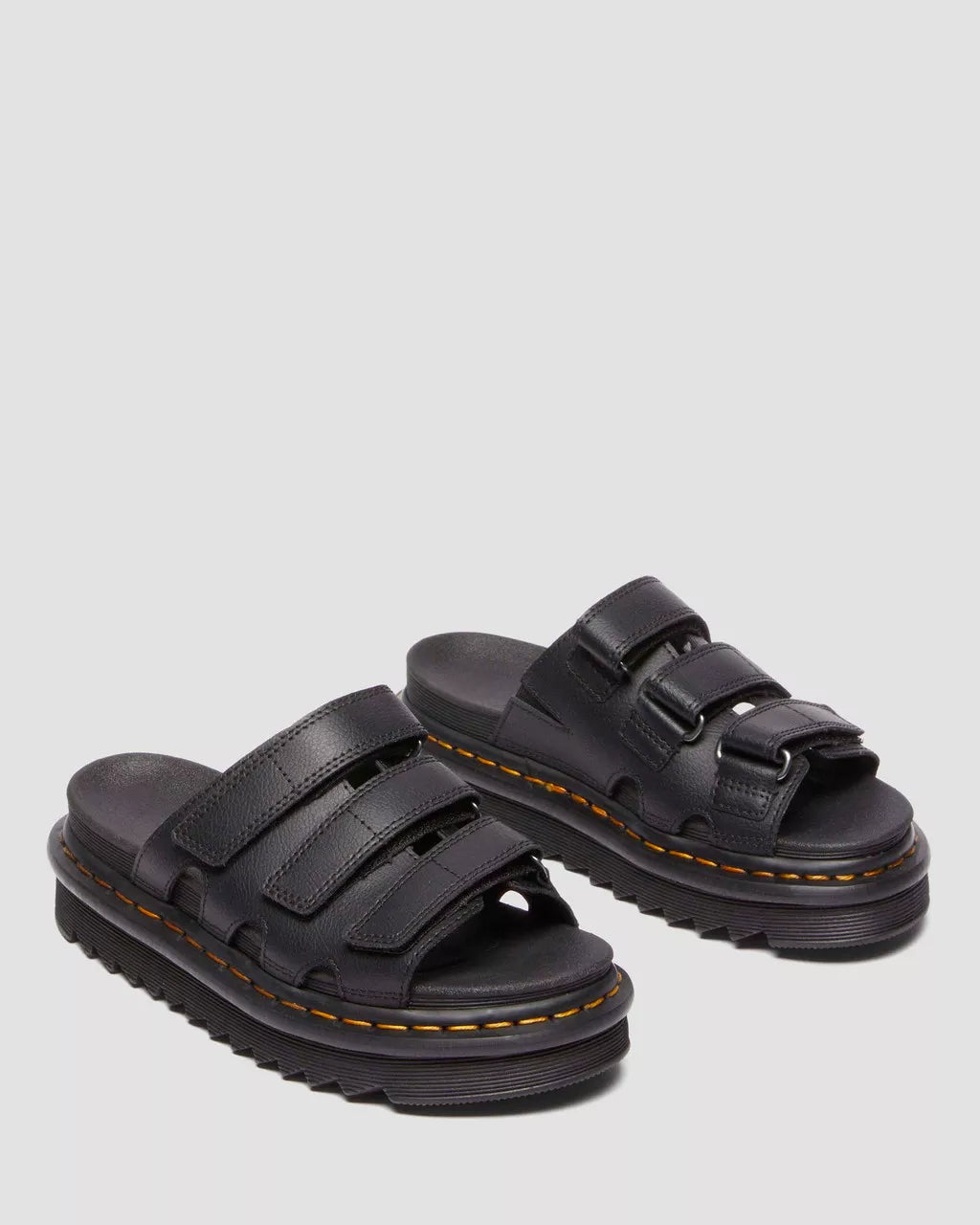 Slide into summer. Our new Raine Slide sandal combines a slider�s easy on/off convenience with our lightweight EVA Zebrilus sole and a comfortable SoftWair footbed. The upper has 3 adjustable Ripstop straps to help you find the perfect fit. The sole is marked with grooving and secured with DM�s yellow welt stitching.