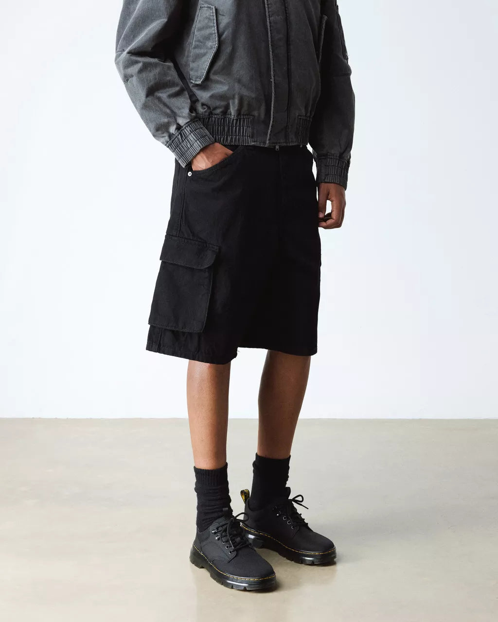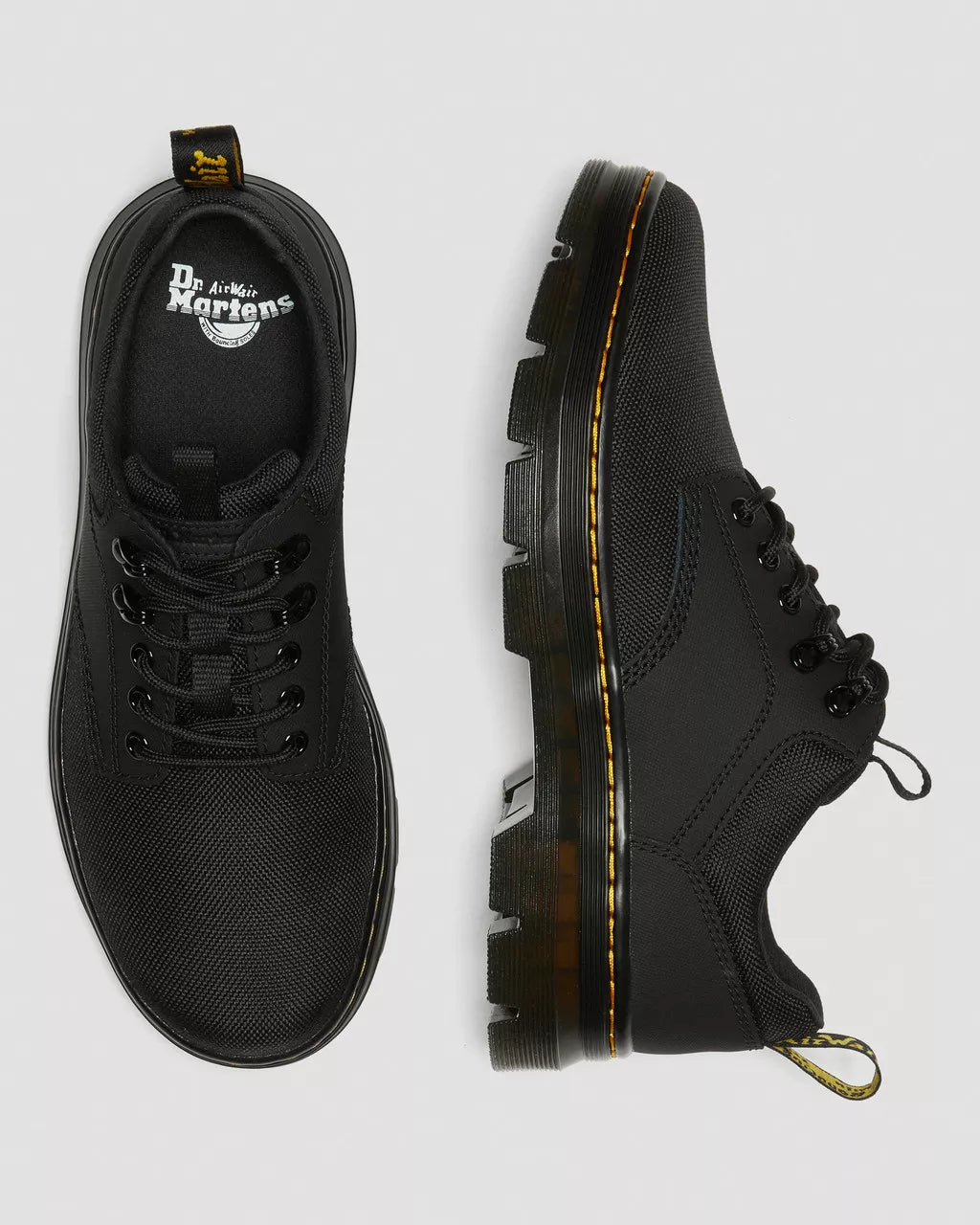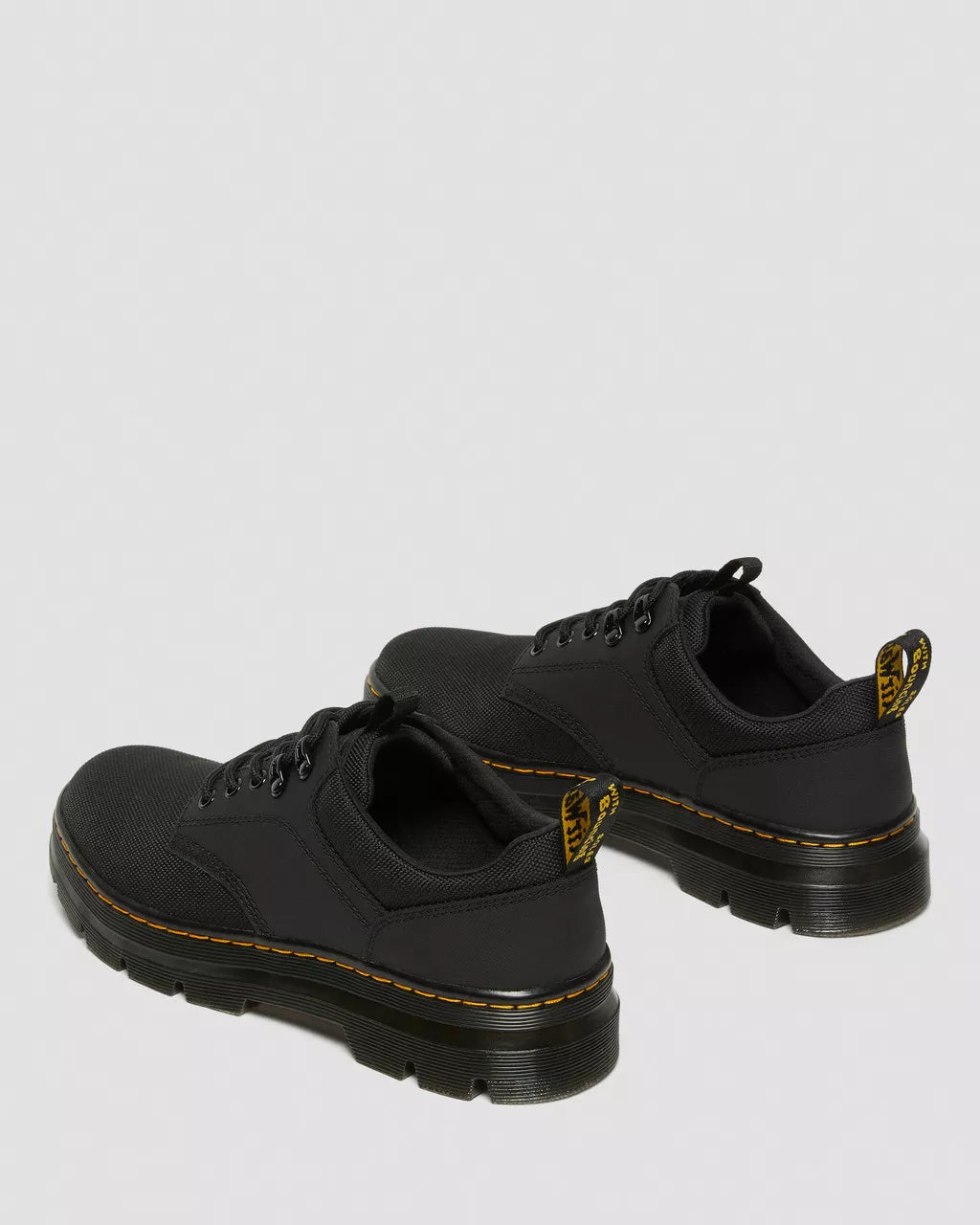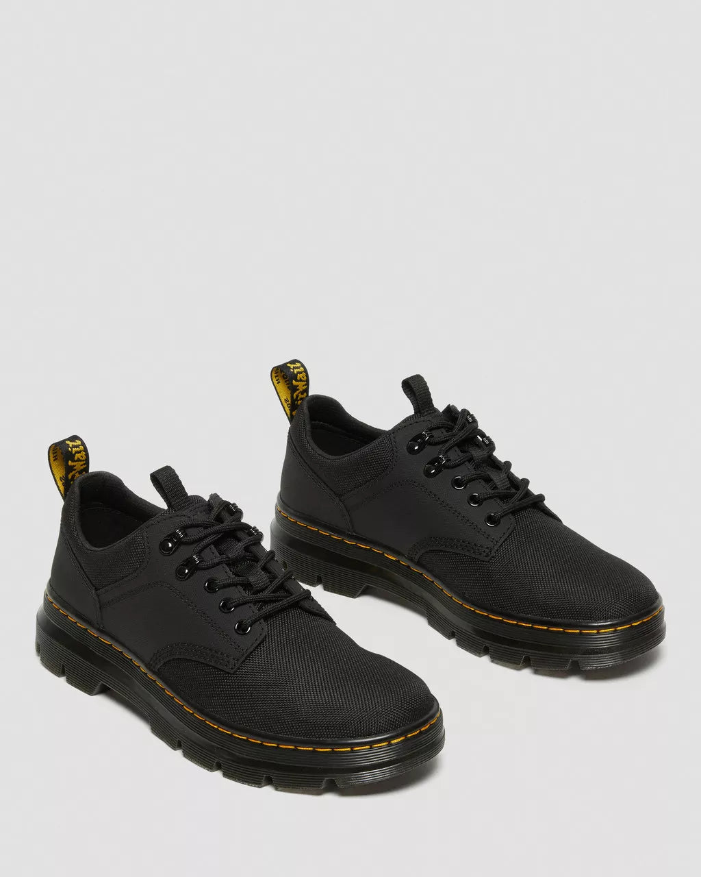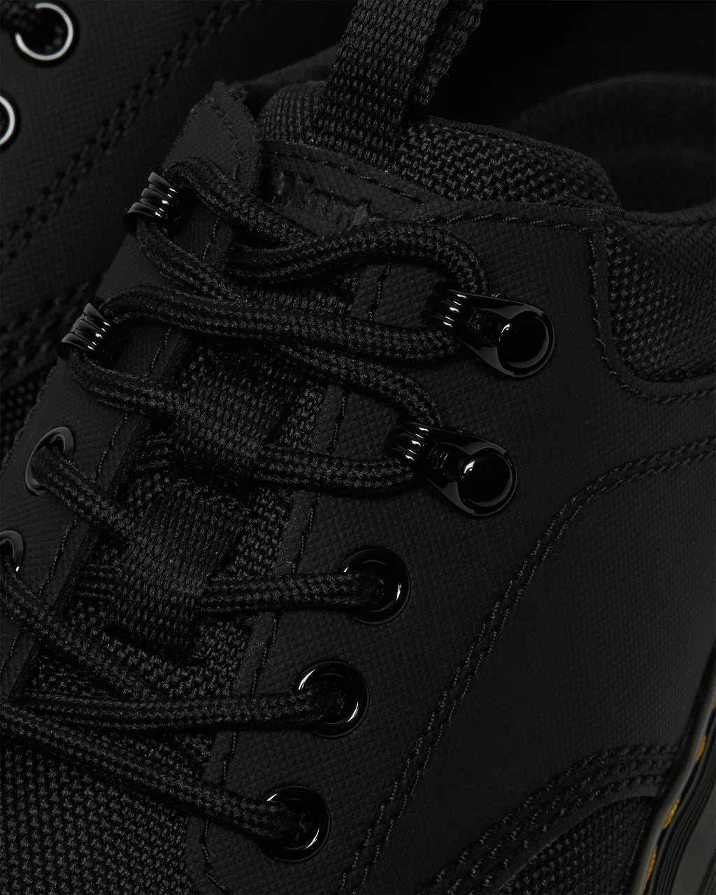 Built for the everyday. Standing on an extra-rugged luggy outsole, these shoes are made from a mix of Extra Tough 50/50 and Ajax leather. Full of Docs DNA, they're fitted with hiker-style laces and finished with yellow stitching and a black and yellow heel loop. Extra Tough 50/50 is an extra tough, synthetic woven fabric with exceptional strength and elasticity. Made with 50% recycled plasticAjax is a PU-coated split leather with a subtle geometric embossCore Dr. Martens DNA: grooved edges, an AirWair heel loop and visible stitchingMade with a comfortable, durable cemented construction
