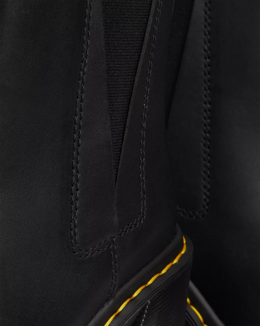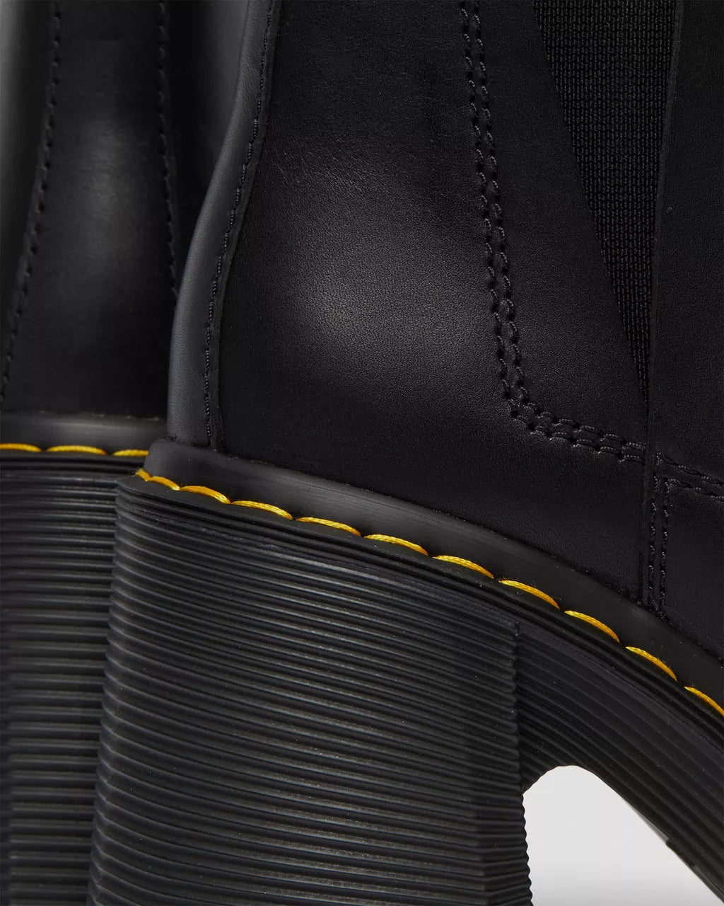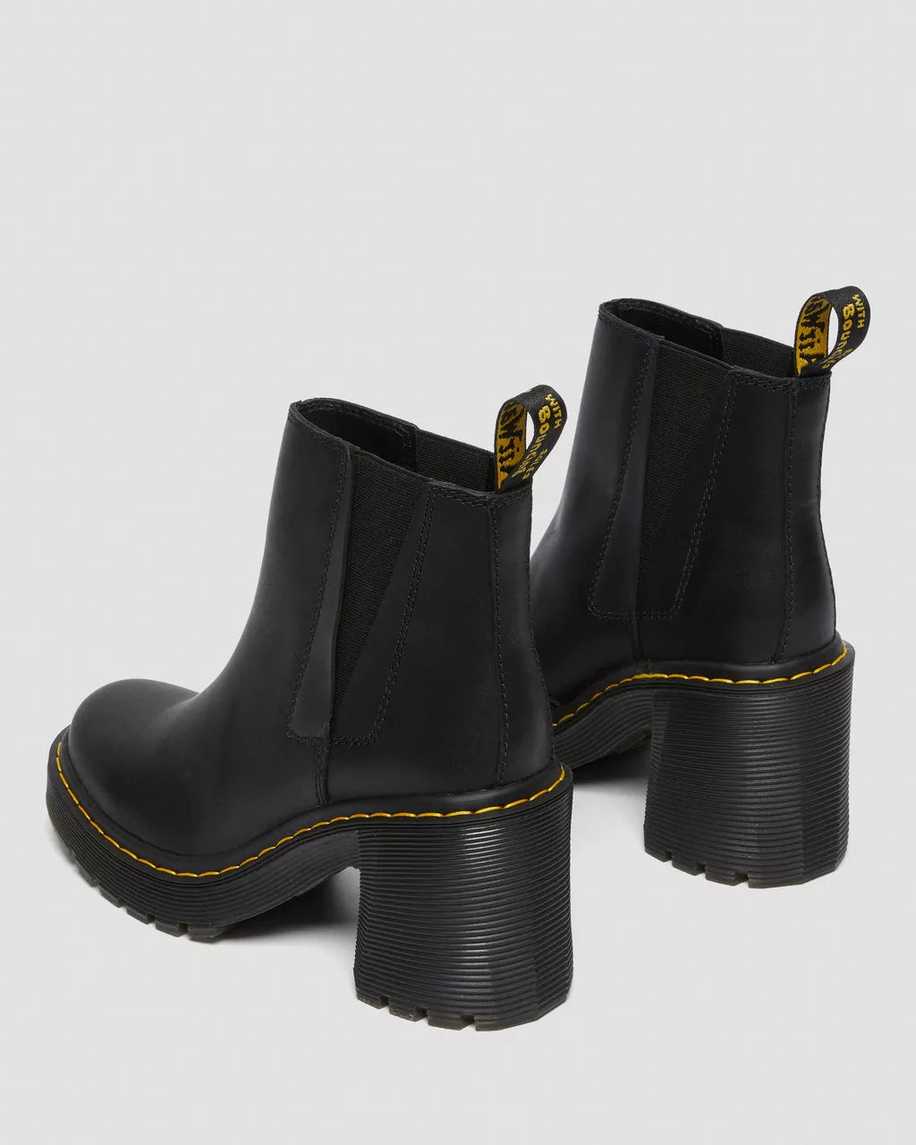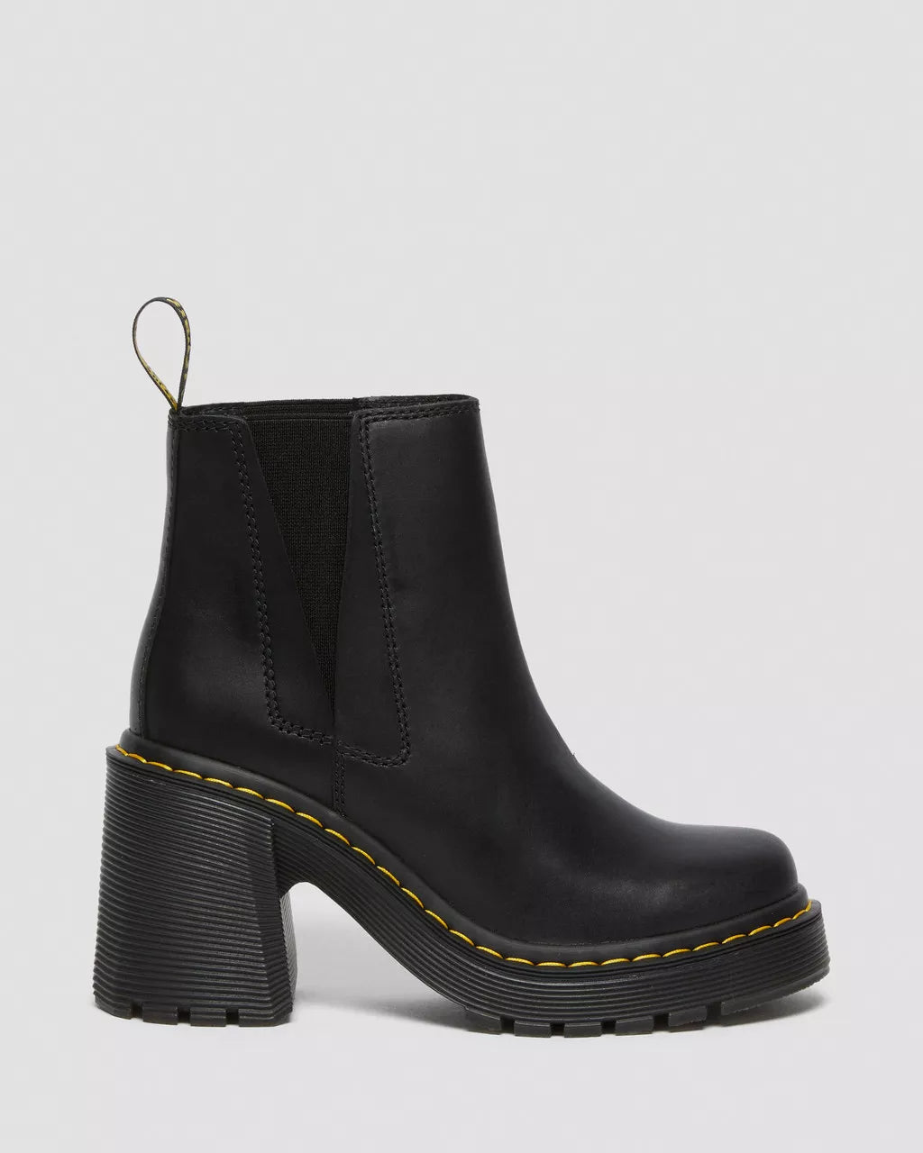 There are Chelsea boots. And then there's the Spence. Our new season boot is stacked high with a grooved outsole and towering flared heel — built to make you feel on top of the world. Made from a soft yet rugged new leather, Sendal, and marked with all our signature DNA, these hard-hitting boots are even tougher than they look. Sendal is a semi-aniline, natural-looking nappa leather with a smooth full-grain finish. Clean with a damp cloth and care with Dr. Martens Shoe PolishMade with durable cemented constructionPlatform height: 1 1/8 in; Heel height: 3 3/4 in