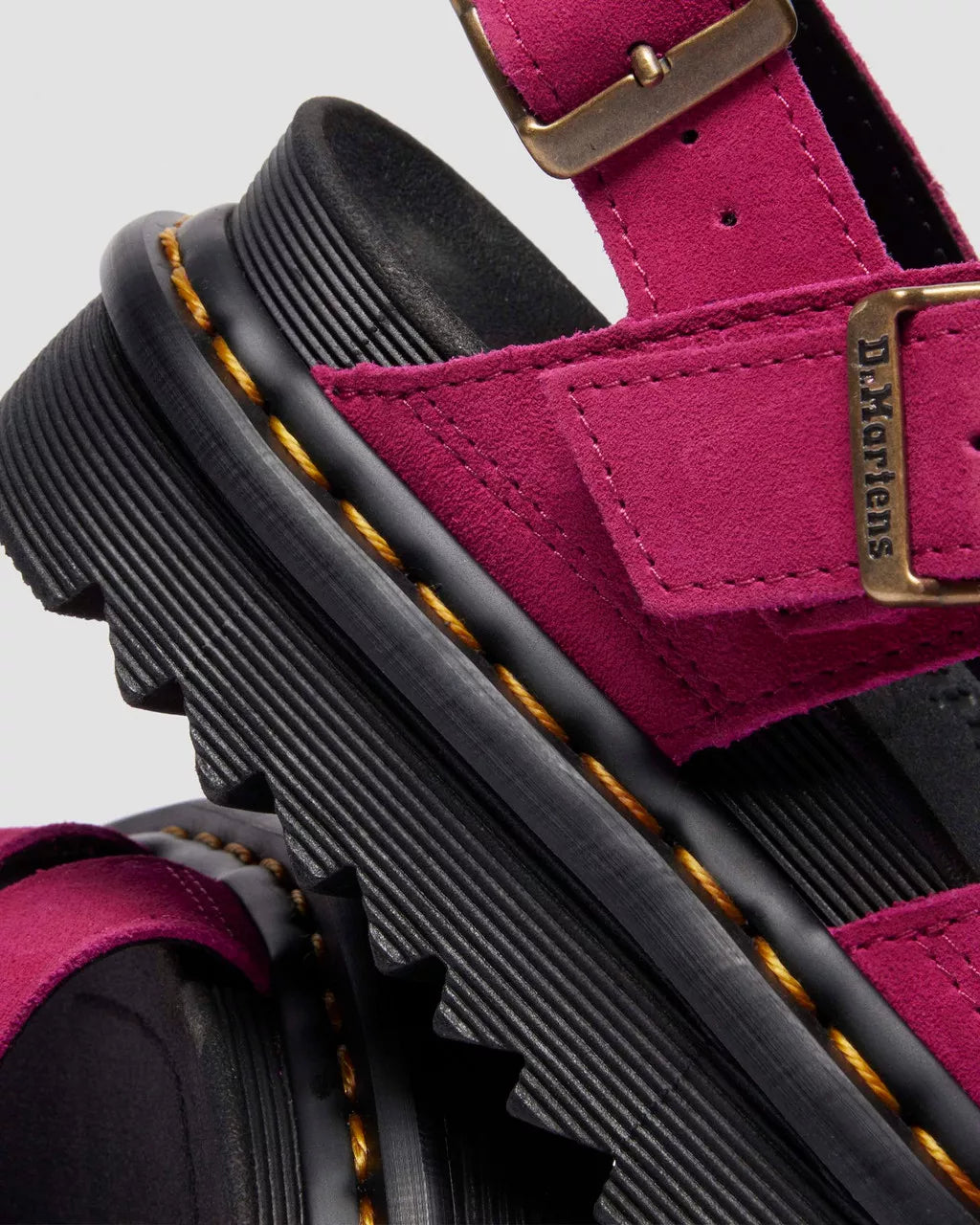 Bold in color, tough in material. The Voss II sandal is remixed once again to command all the attention. Built with Greasy Suede on the upper, a classic suede with a light wax coating and relaxed finish. It features dual adjustable straps in antique gold and sits on a lightweight Zebrilus sole which is welted in place with our classic yellow stitching. We've chosen this leather specifically for its depth of colour. You might find some of the dye transfers, so try and wear with darker colours if you can