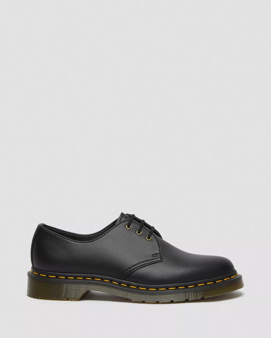 Our classic unisex 3-eye shoe that was crafted for industry, made rebellious by generations of non-conformists — and now, 100% vegan. Our black Felix Rub Off is a high-shine synthetic material with a premium feelMade with classic Doc's DNA, including grooved edges and visible stitchingBuilt on the iconic Dr. Martens air-cushioned sole, which is oil and fat resistant with good abrasion and slip resistance