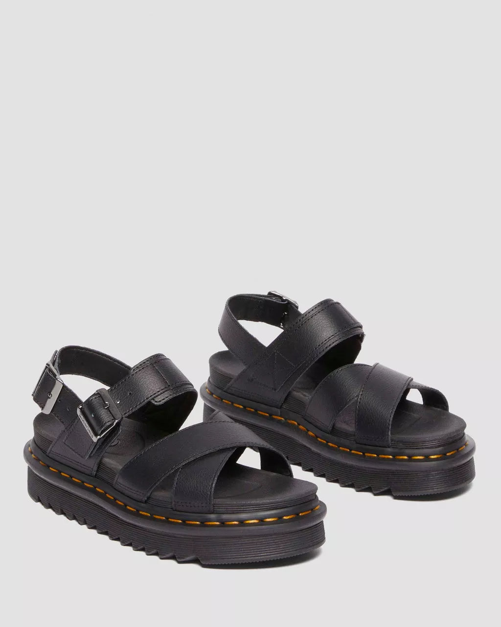 Keep summer easy. The Voss II sandal is lightweight and versatile for a summer on the move. The cross-strap design is secured with two adjustable ankle straps. Built for comfort on long days, it has a SoftWair memory foam footbed and our super-light EVA Zebrilus sole. The serrated sole is grooved and secured with our unmistakable yellow welt stitching.