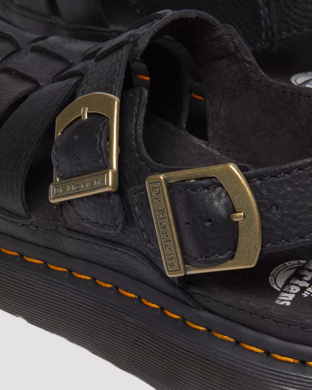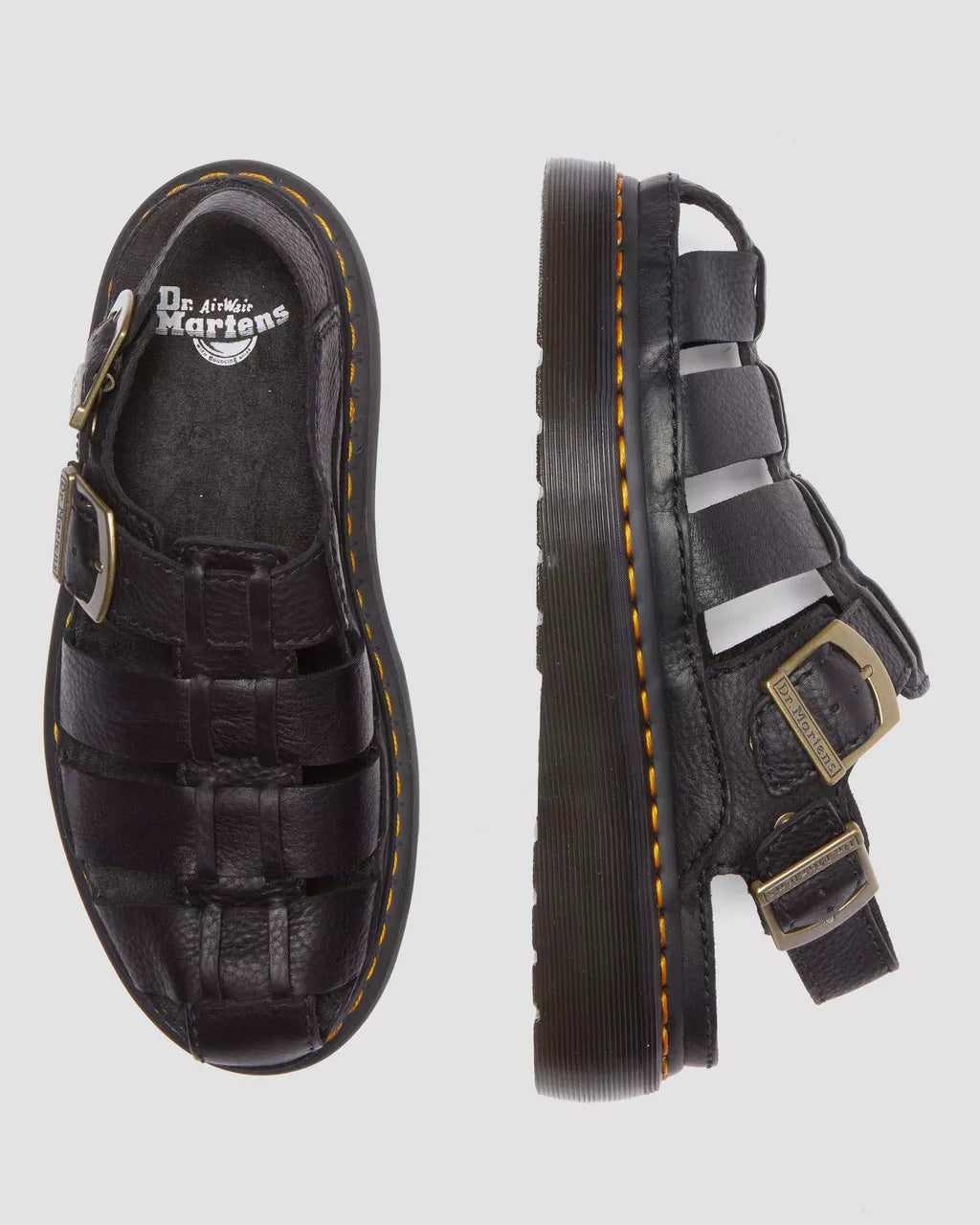 Dial up summer. Our new Fisherman sandal revives summer-infused nostalgia with the attitude, timelessness and versatility of our 90s fisherman. This new edition is stacked on a stacked Quad Shore sole to stand out as much as we always have. Detailed with an antique gold branded buckle and DM’s rivets, they have yellow welt stitching to reinforce your DM’s DNA.Grizzly is a heavyweight leather with a subtle grained finish that ages and develops with timeUnmistakably DM's. The Shore sole keeps our sandals grounded and instantly recognizable. Marked with our signature grooving and secured with contrast yellow welt stitchingSole Height - Platform height: 1 in: Heel height: 1 1/2 inFootbed - Wider and a more rounded toe shape