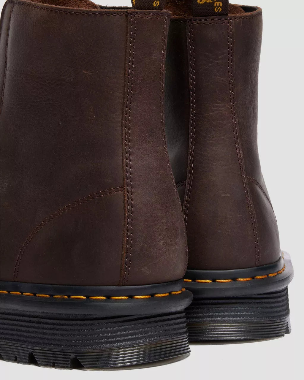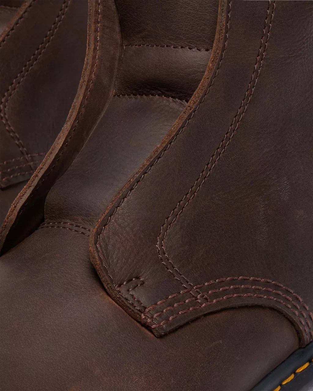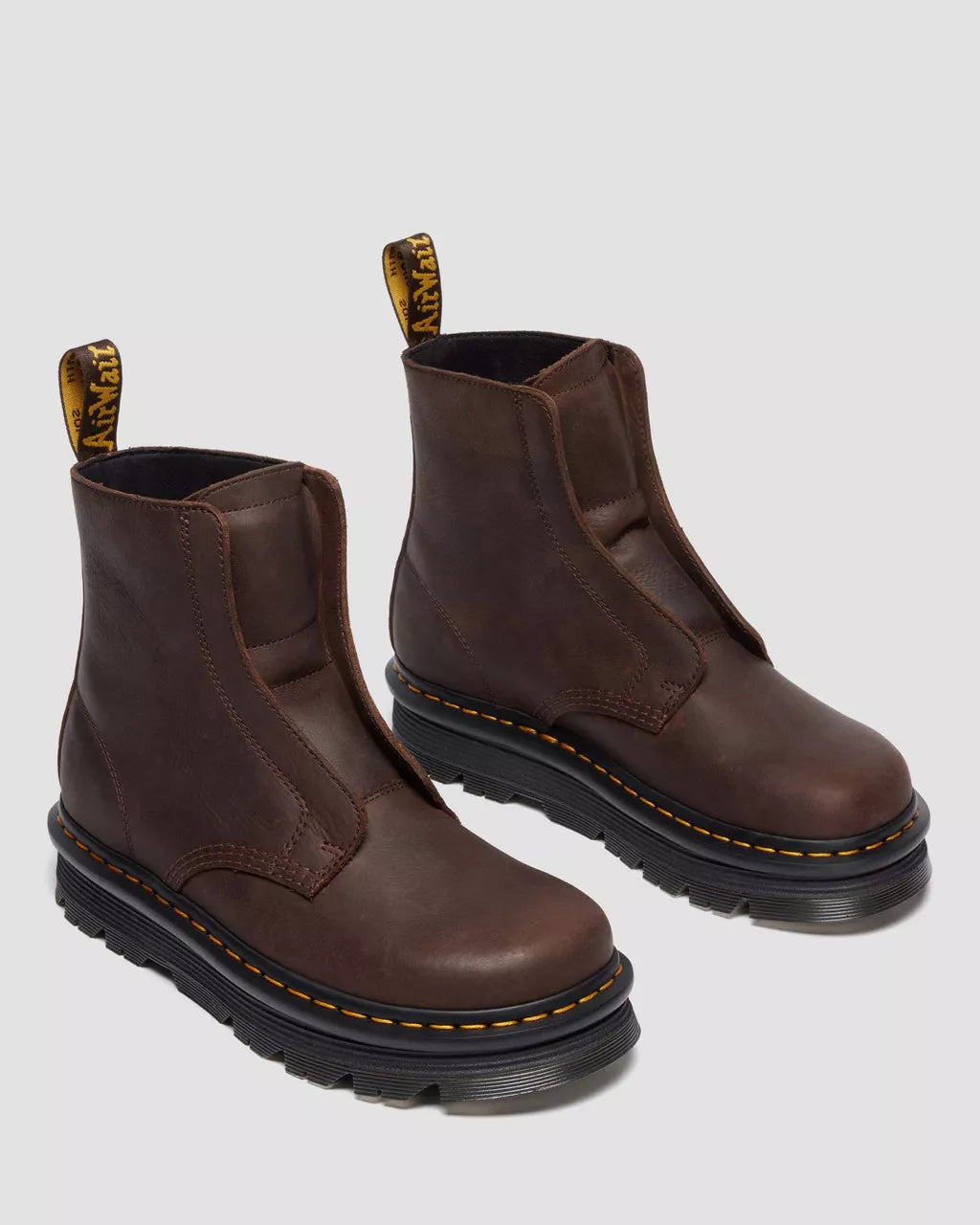 Give tough days a gentle landing with our new Zebzag Laceless boot. Made with rugged Wyoming leather, the relaxed silhouette takes inspiration from our classic 1460 boot and transforms it into a slip-on boot — for minimum effort and maximum comfort. The ergonomic Zebzag sole combines lightweight EVA and durable PVC to give your feet an easy ride without limiting your destination. And our SoftWair footbed adds extra cushioning. The sole boasts distinctive DM's signatures, with a bold tread pattern, exaggerated grooving, and our unmistakable yellow welt stitching.