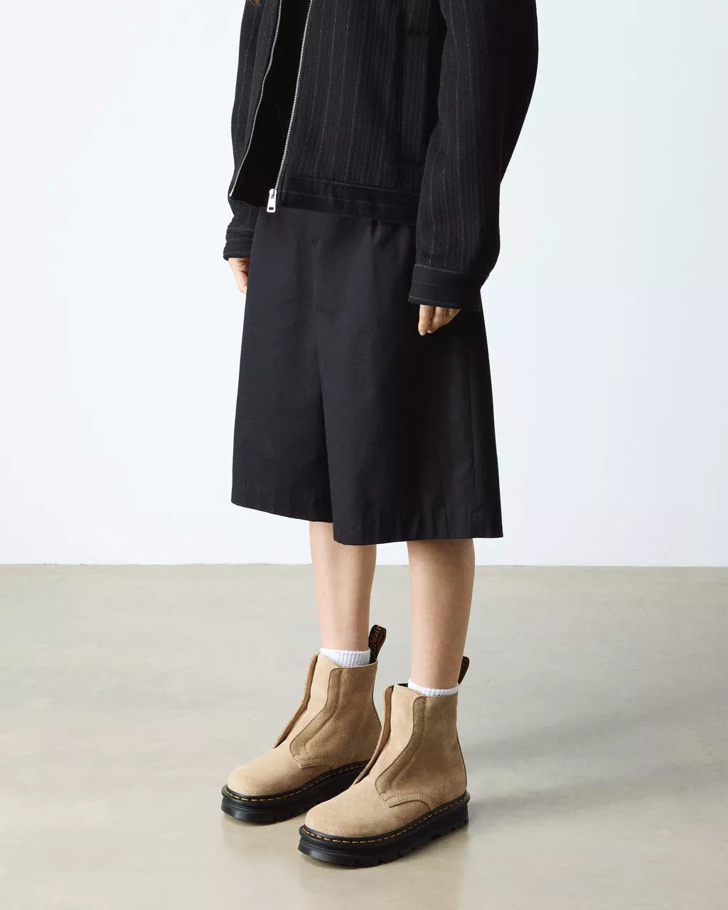 Give tough days a gentle landing with our new Zebzag Laceless boot. Made with soft-yet-tough EH Suede, the relaxed silhouette takes inspiration from our classic 1460 boot and transforms it into a slip-on boot — for minimum effort and maximum comfort. The ergonomic Zebzag sole combines lightweight EVA and durable PVC to give your feet an easy ride without limiting your destination. And our SoftWair footbed adds extra cushioning. The sole boasts distinctive DM's signatures, with a bold tread pattern, exaggerated grooving, and our unmistakable yellow welt stitching.