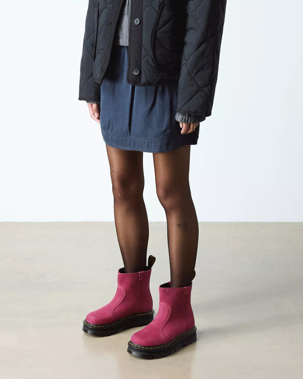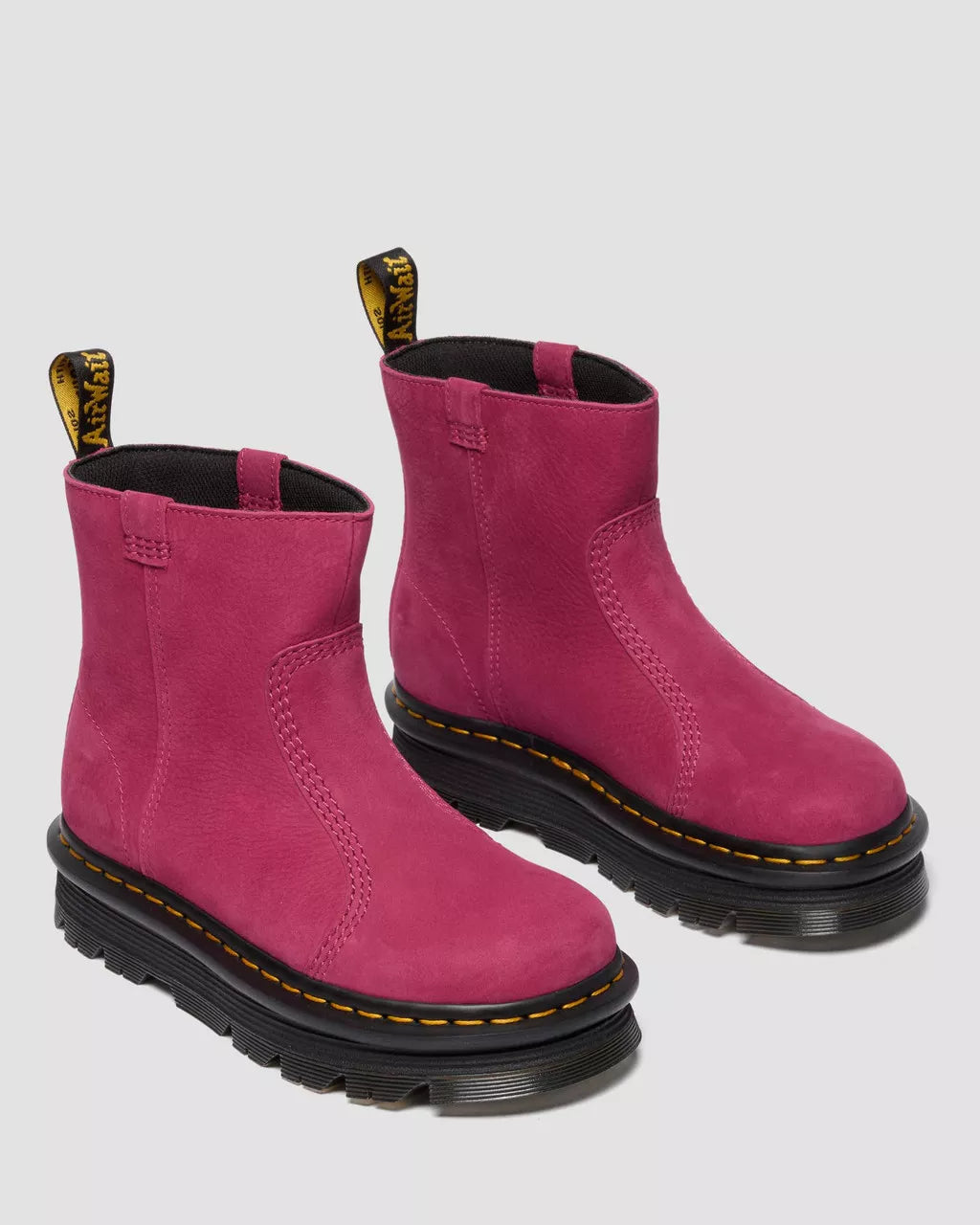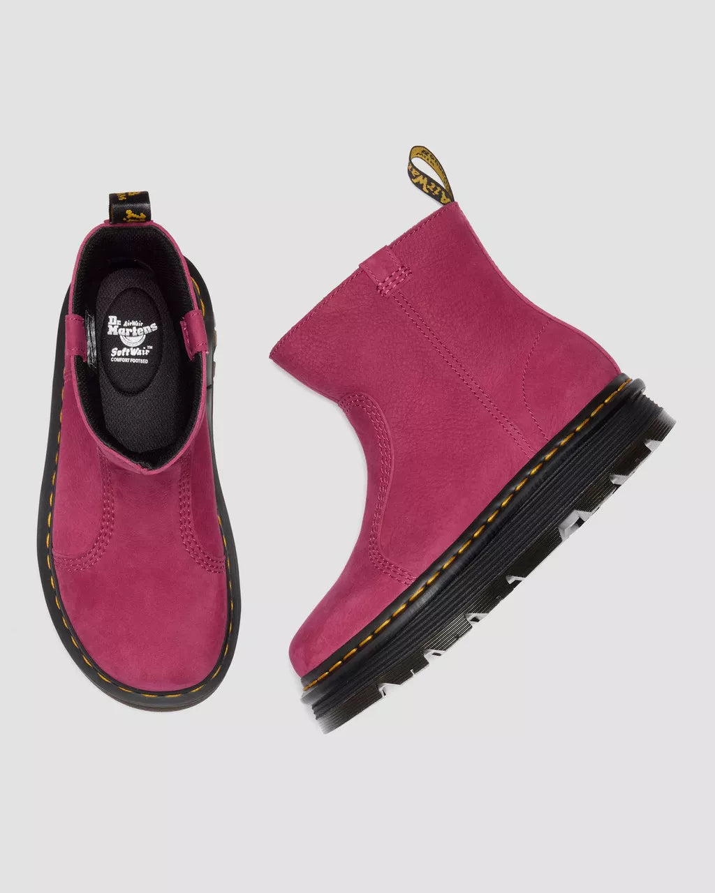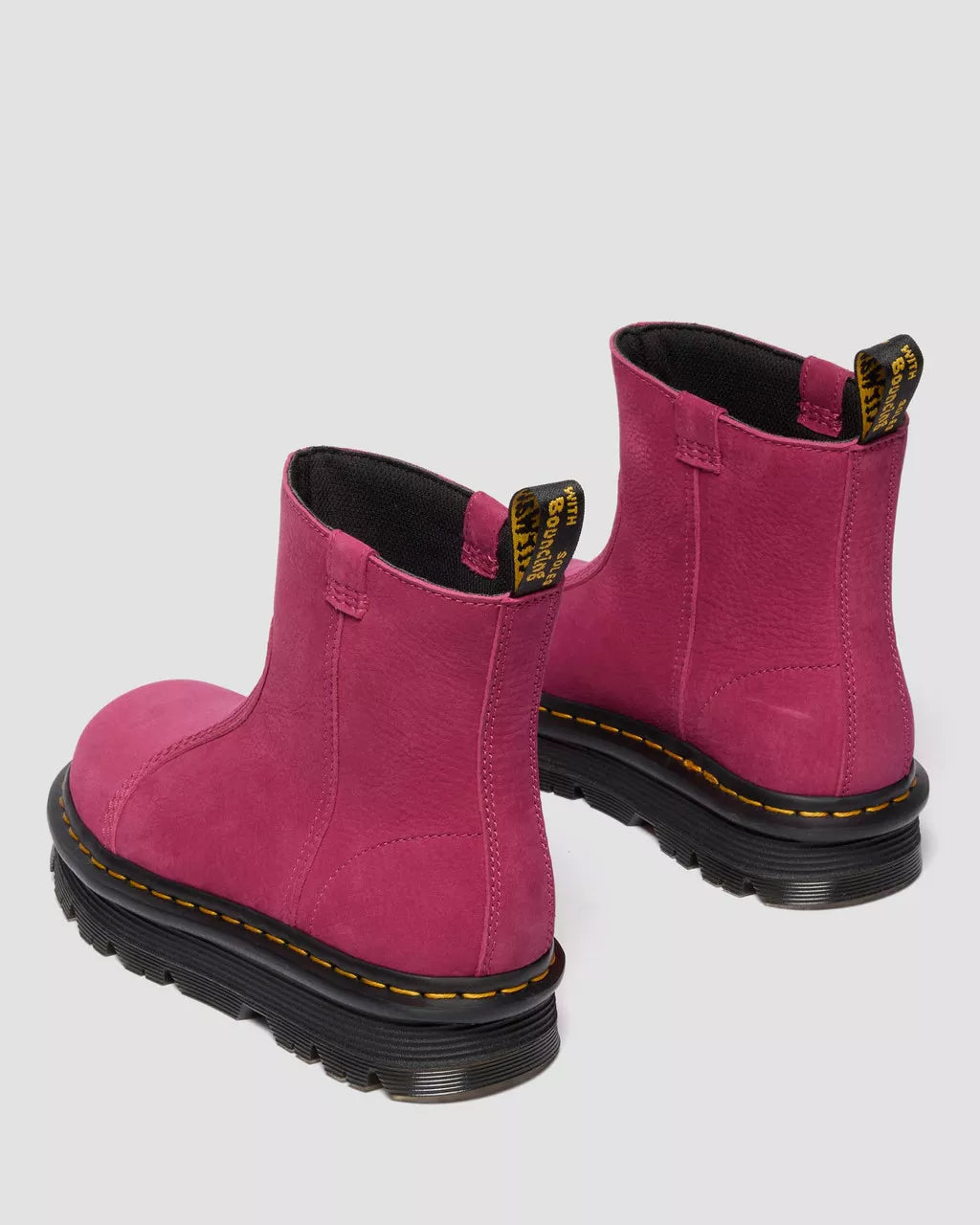 Easy comfort, easy go. Our new Zebzag Rigger boot has a silhouette inspired by industrial footwear — rebuilt for easy living and even easier styling. Made with silky-yet-water-resistant Milled Nubuck with dual pull tabs on either side — so you can pull on and head out. The ergonomic Zebzag sole combines lightweight EVA and durable PVC to give your feet an easy ride without limiting your destination. And our SoftWair footbed adds extra cushioning. The sole boasts distinctive DM's signatures, with a bold tread pattern, exaggerated grooving, and our unmistakable yellow welt stitching. We've chosen this leather specifically for its depth of color. You might find some of the dye transfers, so try and wear with darker colors if you can.