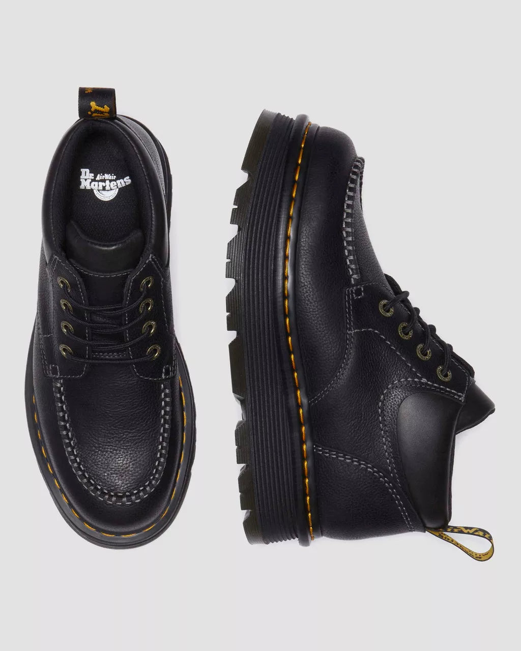 Inspired by our industrial archives - the lightweight Zebzag sole returns in an ankle boot silhouette. Offering a workwear aesthetic with polished, contemporary styling, the newest iteration of the Zebzag boot features a 4-eye silhouette and ankle padding for maximised comfort. It’s stacked on our Zebzag sole, an innovation in comfort. Featuring exaggerated cleats and a platform silhouette, the hybrid air-cushioned sole fuses feather-weight EVA with rugged PVC and is finished with our signature yellow stitching.