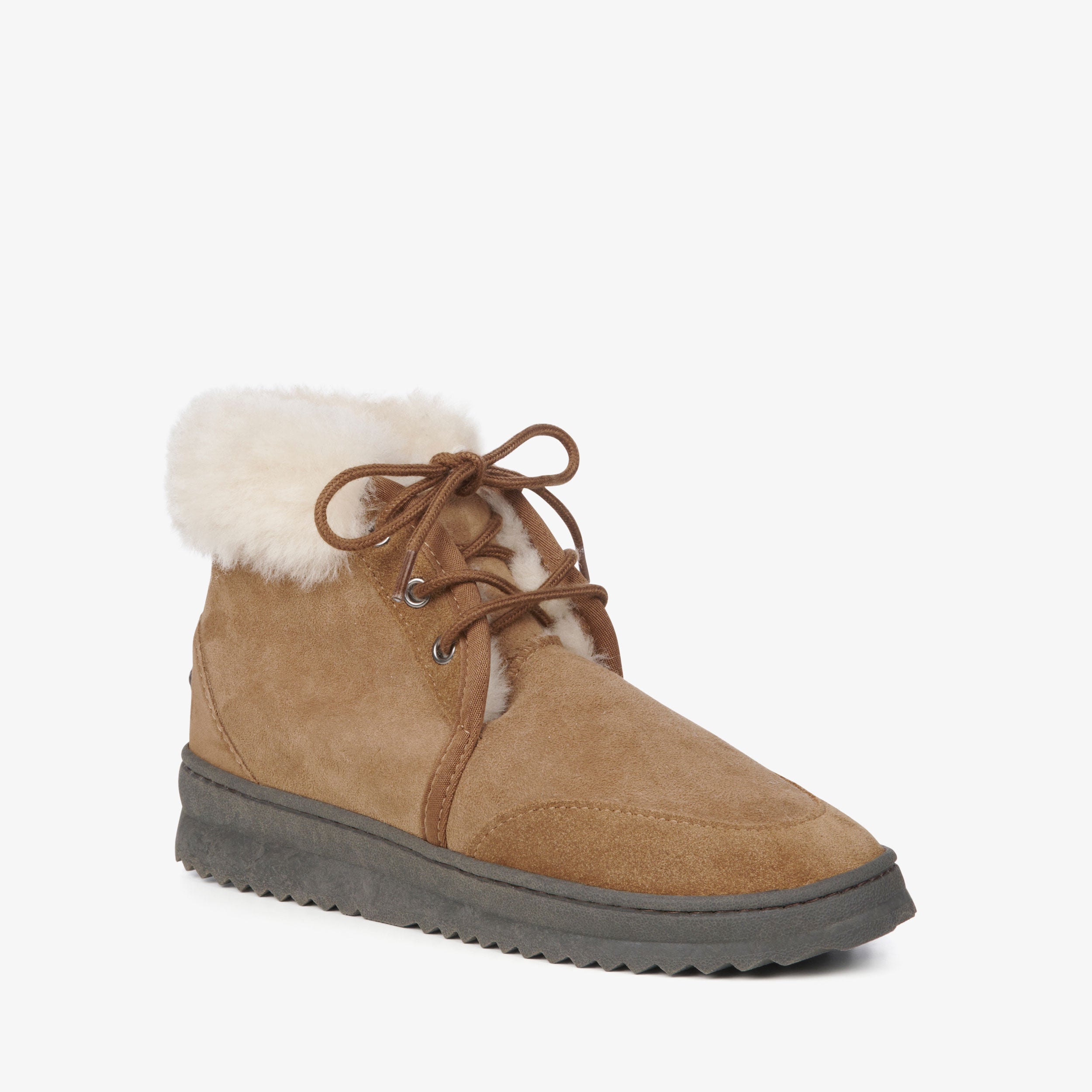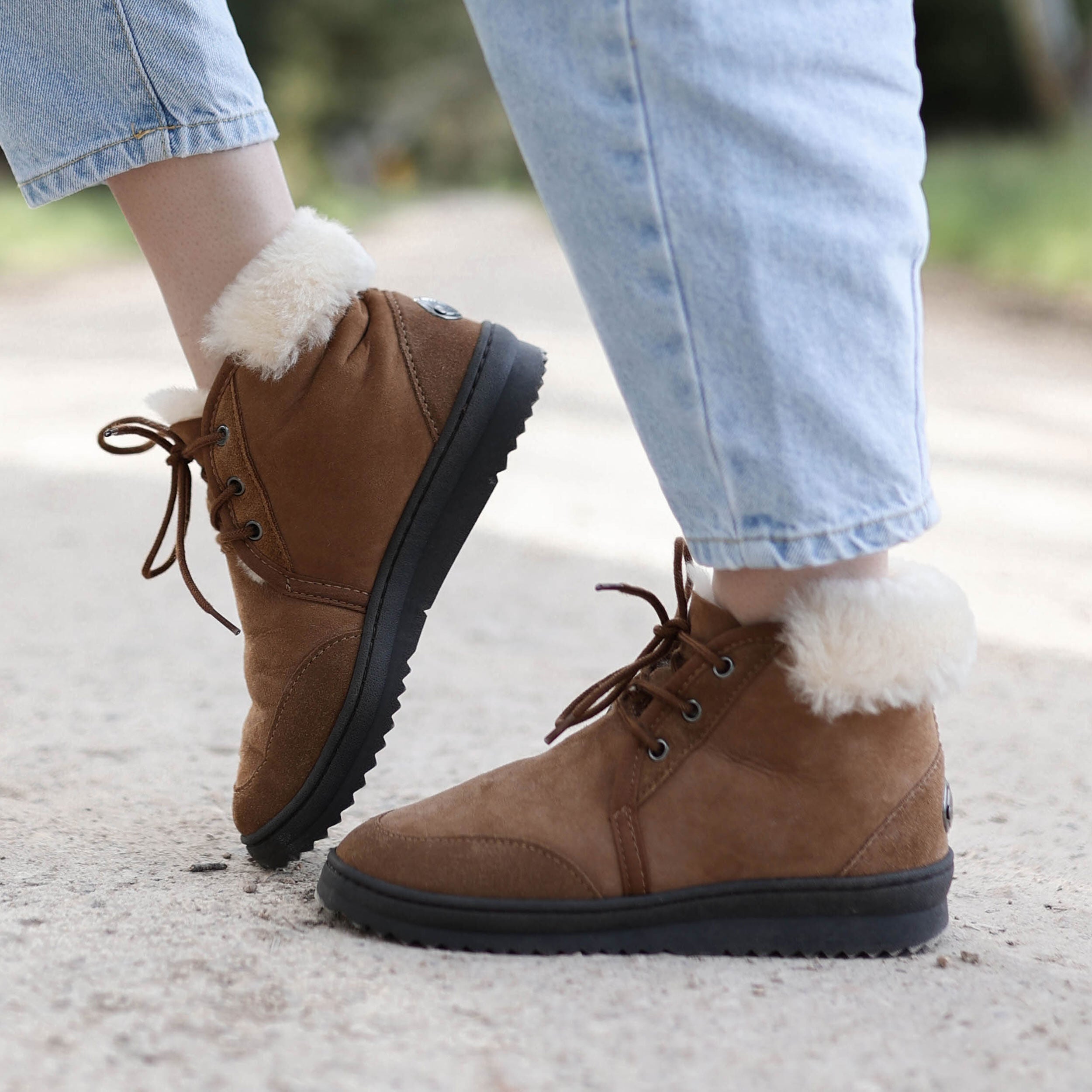 Step into pure comfort and style with these luxurious boots, crafted from premium double-face Australian sheepskin. The cuffed design not only adds a chic touch but also enhances the warmth, keeping your feet cosy even on the coldest days. With their slip-on design, these boots are as easy to wear as they are stylish. The water-resistant finish ensures durability, making them perfect for both indoors and quick trips outside.